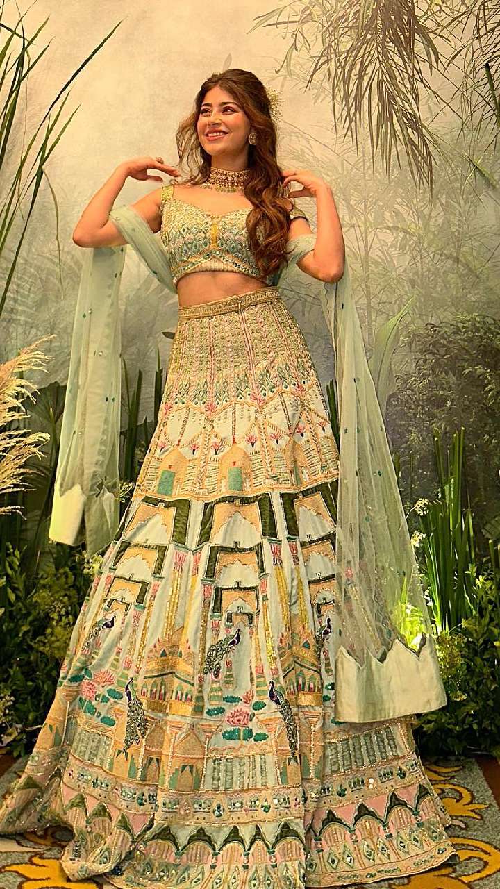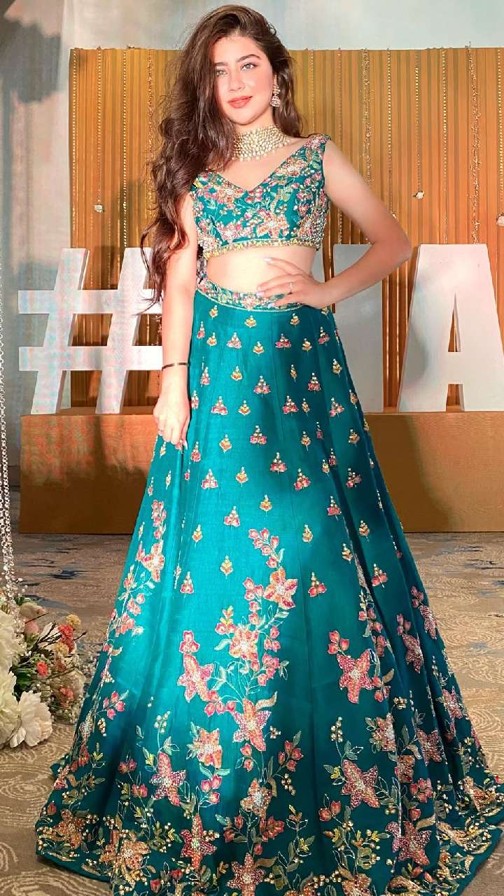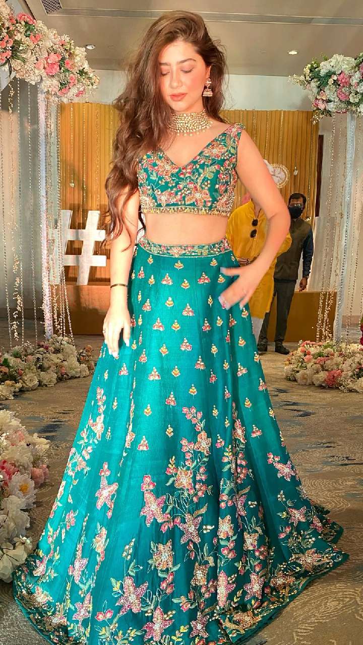 ब्लू कलर के इस हैवी वर्क लहंगे में अदिति भाटिया हुस्न की मल्लिका लग रहीं हैं। आप इस रक्षा बंधन एक्ट्रेस के इस लुक को कैरी कर सकती हैं।