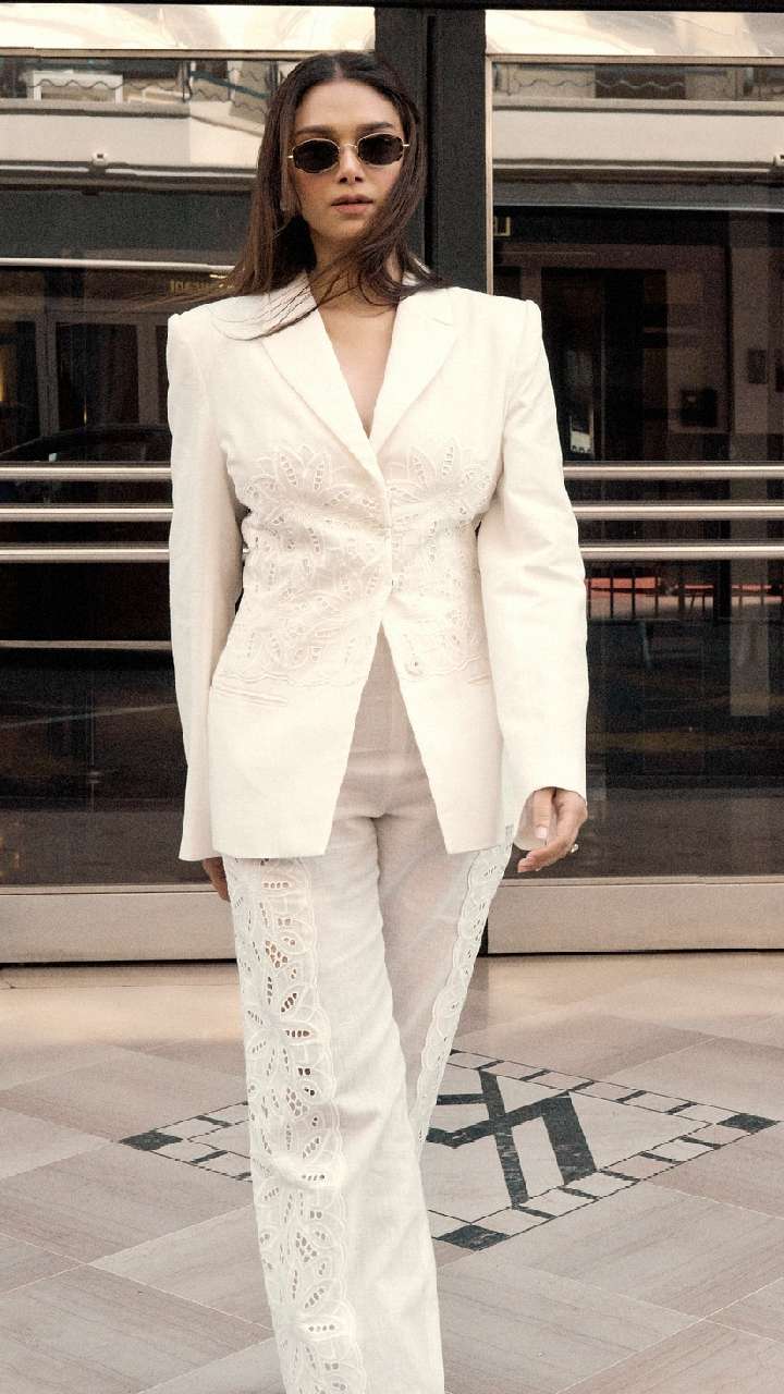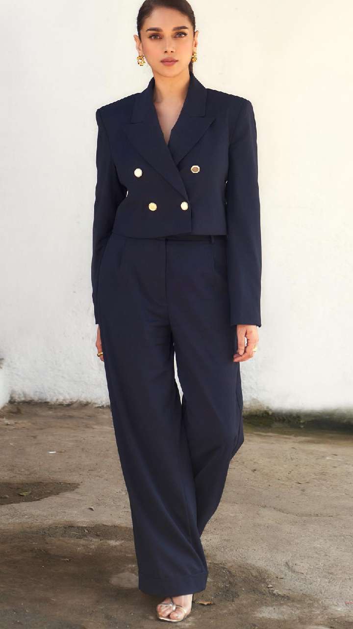 अदिति राव हैदरी का शार्ट ब्लेजर विद पेंट लुक ऑफिस इवेंट्स में आपको अट्रैक्टिव लुक देगा। आप इसे जरूर ट्राई करें।