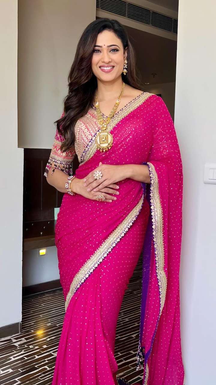 अहोई अष्टमी पूजा में एक्ट्रेस के जैसी जरी वर्क पिंक सिल्क साड़ी आपके लुक में चार चांद लगा देगी। ऐसी साड़ियां आपके लुक को रॉयल बनाती हैं।
