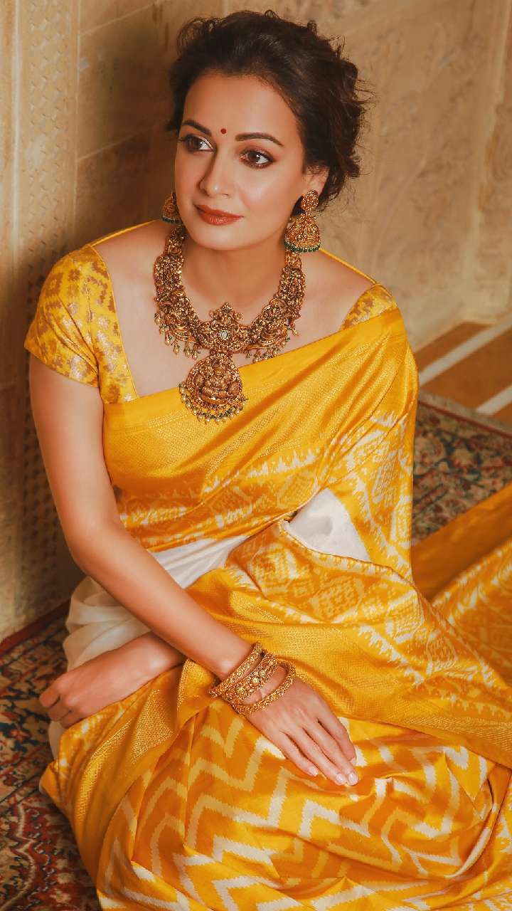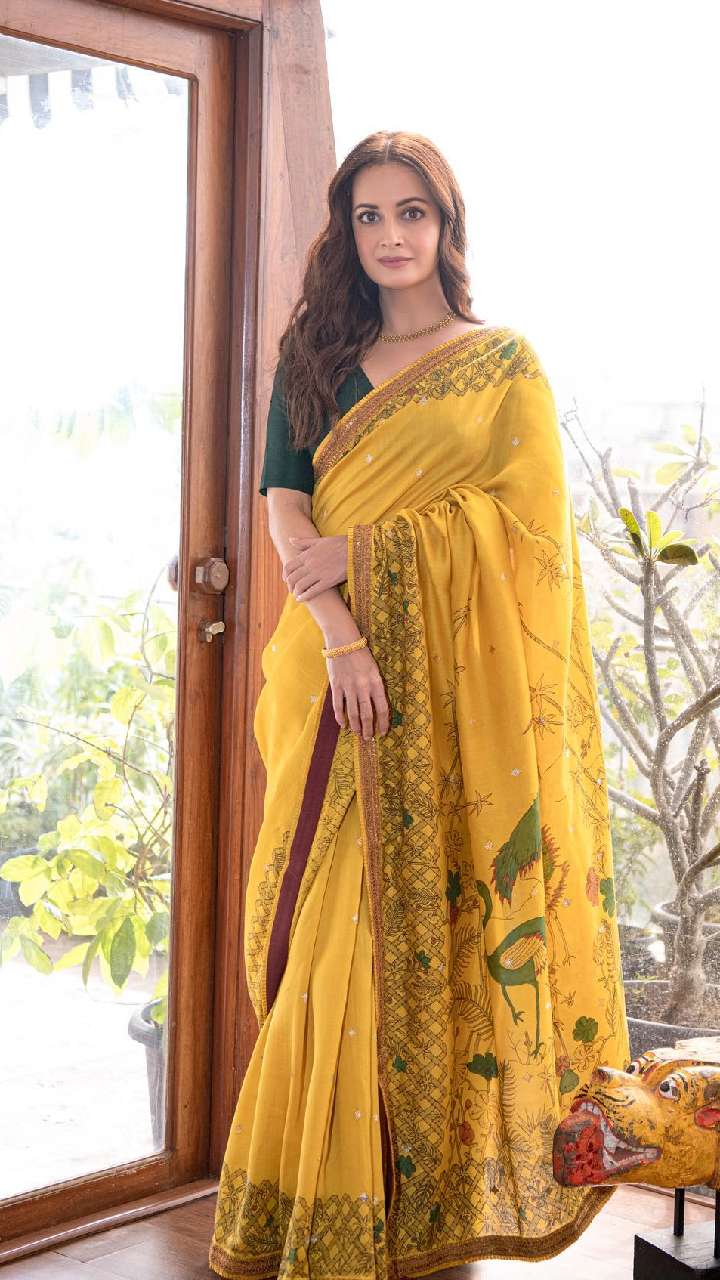 करवा चौथ के बाद बच्चों के लिए अहोई अष्टमी का व्रत रखा जाता है। जो कि 24 अक्टूबर को मनाया जाएगा। ऐसे में आप इस दिन दिया मिर्जा की रॉयल साड़ियां पहन सकती हैं।