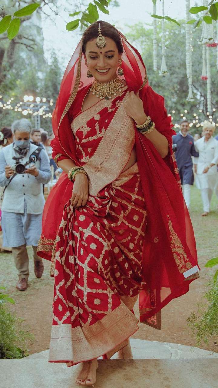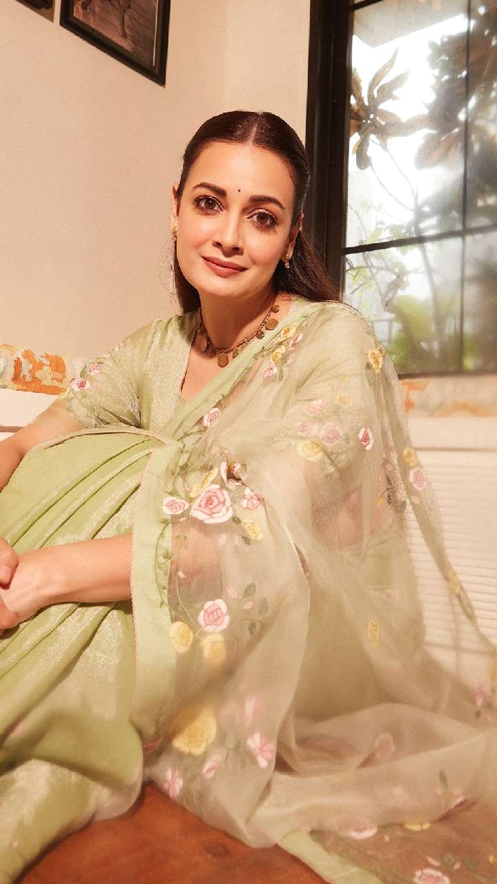 आप दिया मिर्जा की ग्रीन टिशू साड़ी को भी ट्राई कर सकती हैं। ऐसी साड़ियां सिंपल दिखने के साथ काफी खूबसूरत लुक देती हैं।
