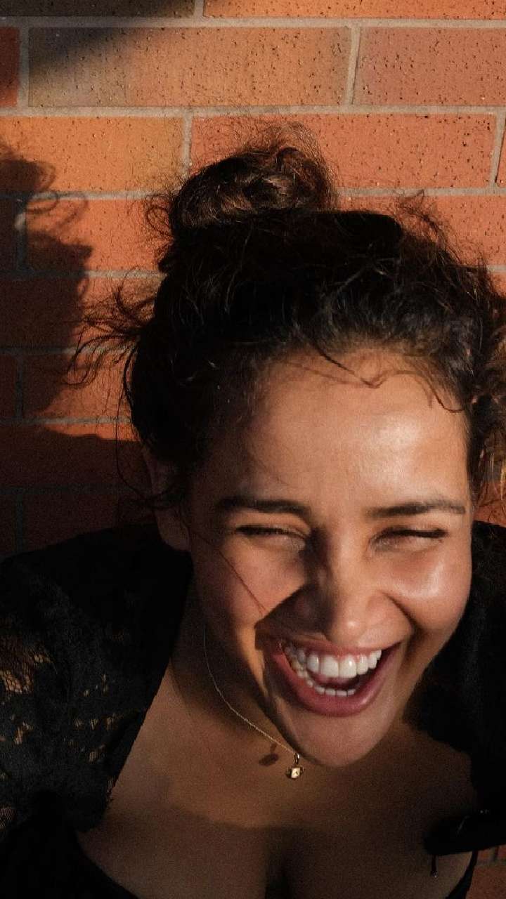तस्वीर में खिलखिलाते नजर आ रही एक्ट्रेस ने ब्लैक कलर की ब्रा, स्कर्ट और फुल स्लीव कट आउट कोट पहनी हुई हैं।