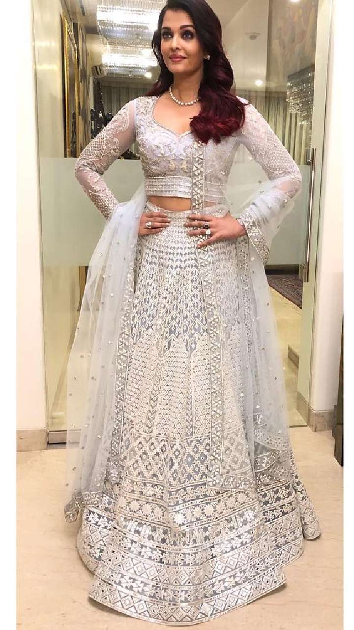 ऐश्वर्या सिल्वर कलर के लहंगा में शादी-फंक्शन के लिए एकदम परफेक्ट लुक दे रही हैं। इसके साथ उन्होंने प्यारा सा पर्ल नेकलेस पेयर किया है।