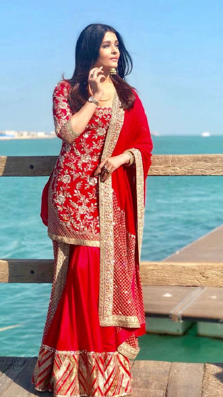 ऐश्वर्या राय का ये रेड कलर का सूट बेहद शानदार है। इस सूट में ना तो ज्यादा भराव है और ना ही ज्यादा प्लेन है।