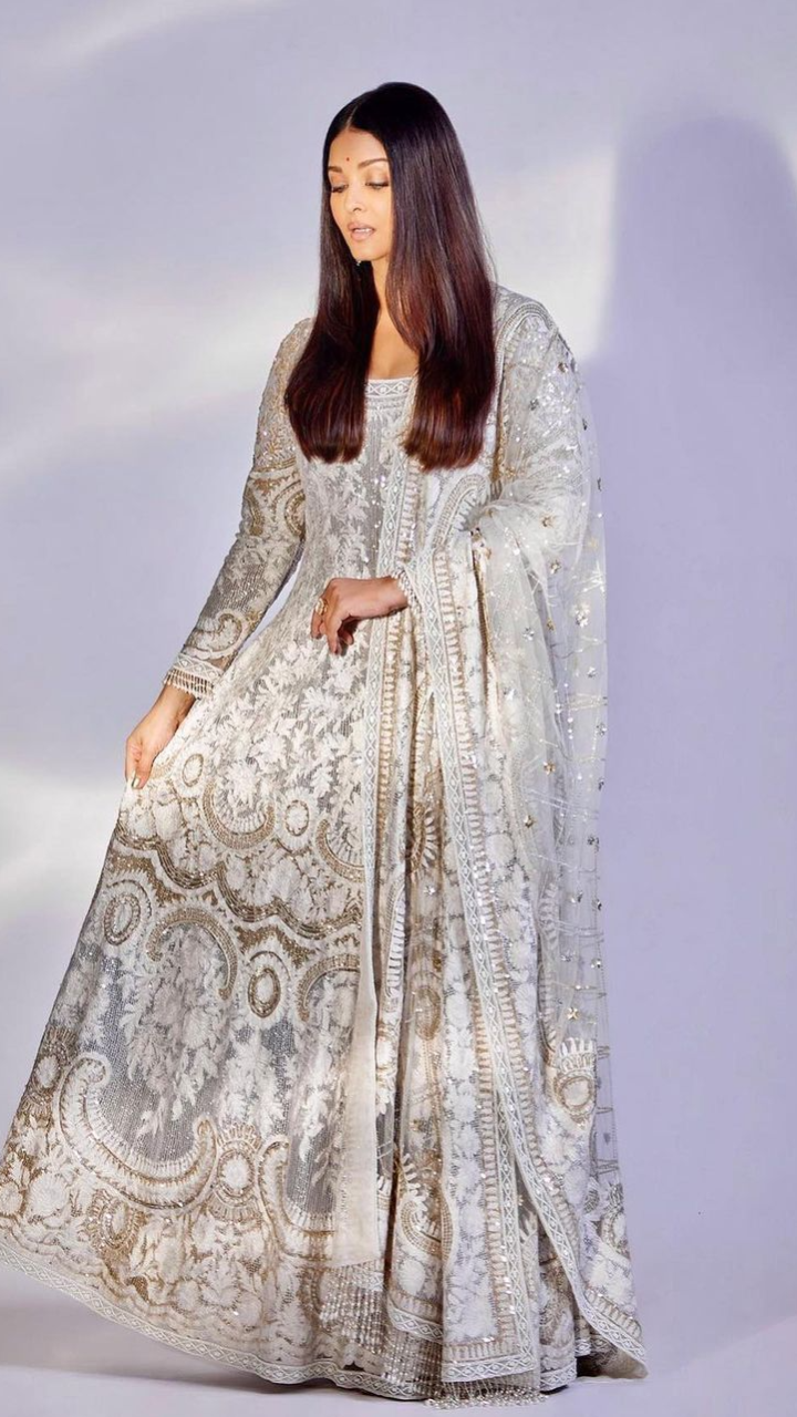 ऐश्वर्या अपनी सुंदरता से खूबसूरती की मिसाल पेश करती हैं। एक्ट्रेस इस सफेद रंग के अनारकली सूट में बेहद सुंदर लग रही हैं।