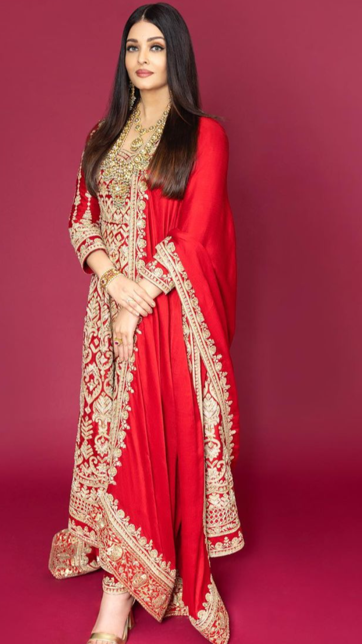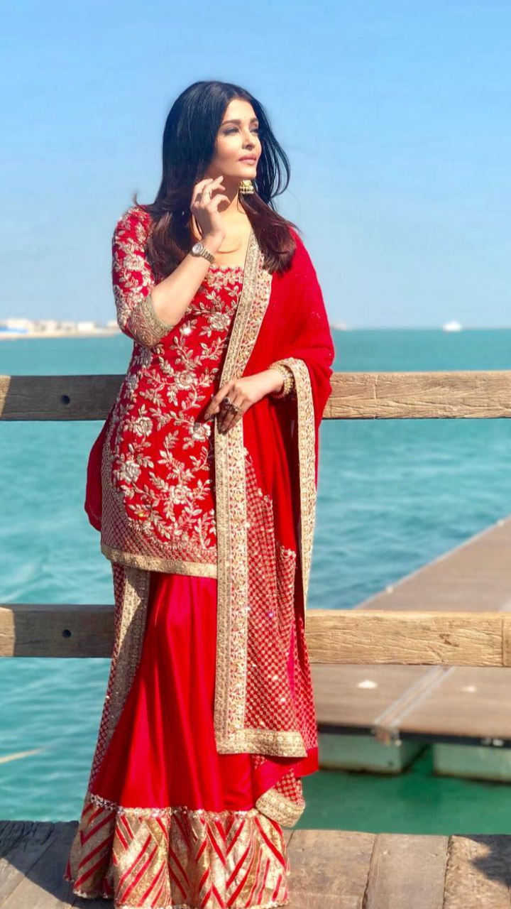 दीवा ने तस्वीर में एंब्रायडर्ड रेड कुर्ती और जरी बॉर्डर का क्रिस क्रॉस पैटर्न वाला रेड डुप्ट्टा ले रखा हैं।