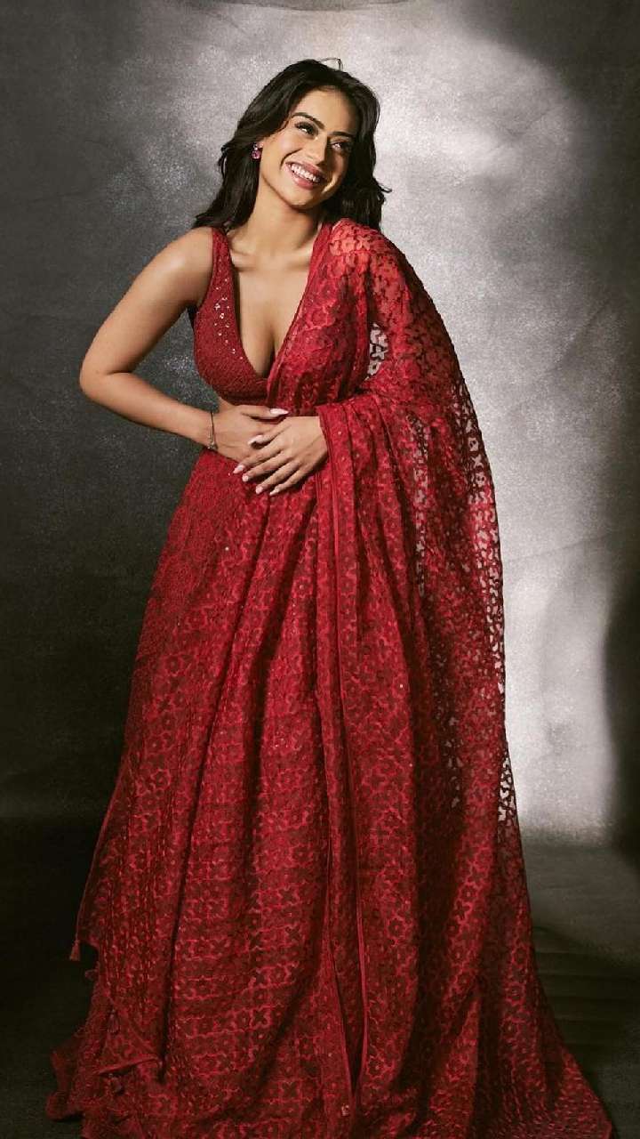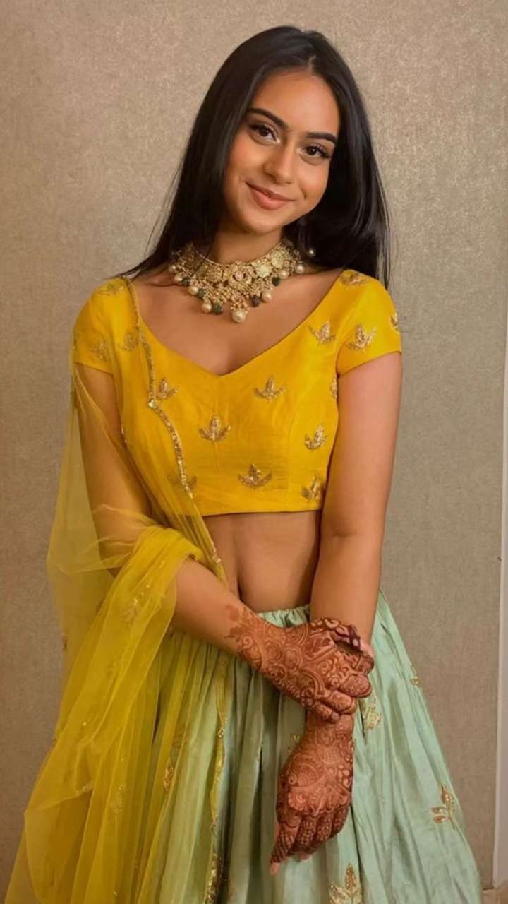 रेड कलर के लहंगे के साथ नीसा देवगन ने डीप नेक मिरर वर्क ब्लाउज के साथ नीसा का लहंगा भी शानदार लग रहा है।