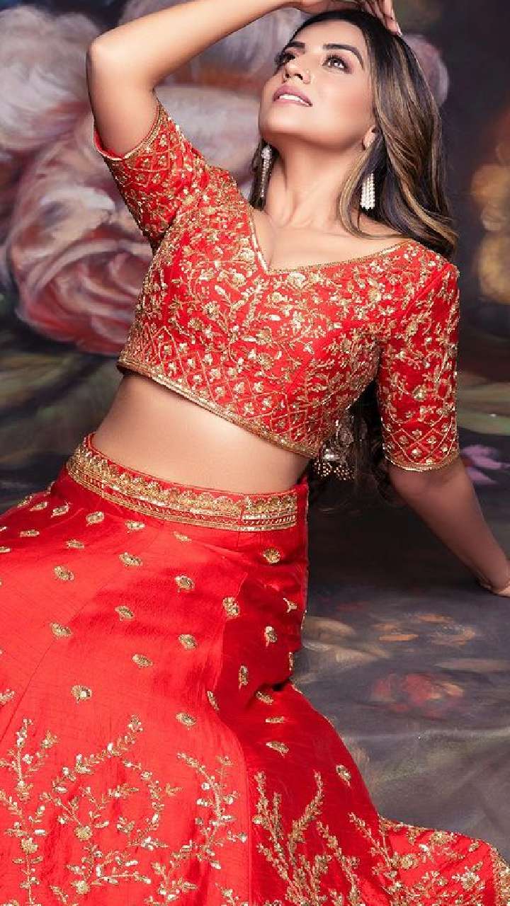 भोजपुरी अदाकारा इस रेड कलर लहंगे में बेहद गॉर्जियस दिख रही हैं।