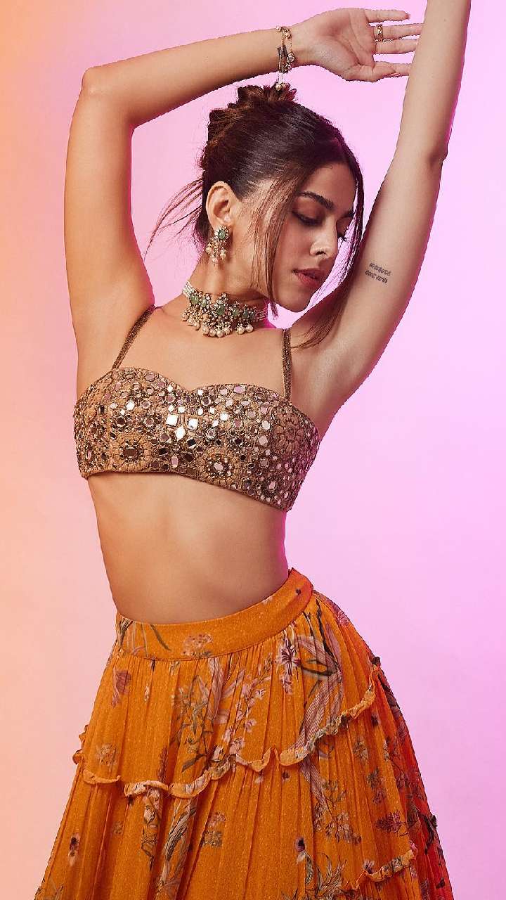 आप भी अलाया की तरह अपने किसी लहंगे के साथ इस तरह की नूडल स्ट्रैप चोली को ट्राई कर सकती हैं। ये आपको एकदम बोल्ड लुक देगी।