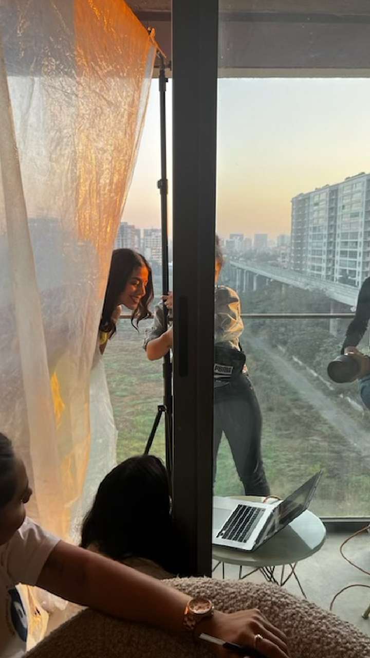 अलाया की इस तस्वीर को देख कर पता लग रहा है कि ये फोटोशूट उनकी बालकनी में पन्नी लगाकर किया गया हैं।