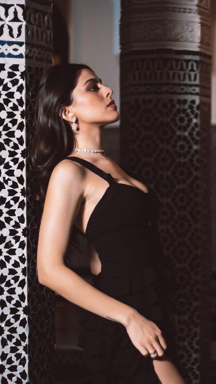 अलाया फर्नीचरवाला ब्लैक थाई हाई स्लिट ड्रेस में अपनी हॉटनेस का जादू चलाती नजर आ रही हैं।