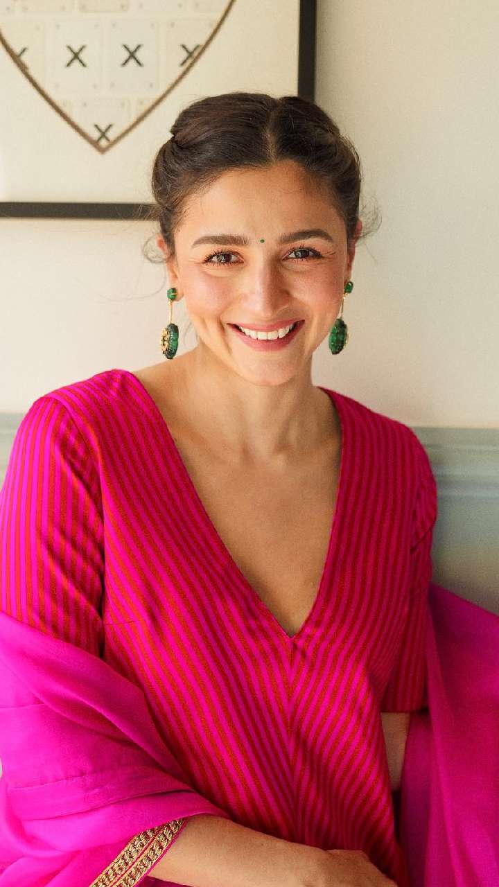 पिंक कलर के सूट में आलिया भट्ट बहुत प्यारी लग रहीं हैं। एक्ट्रेस ने इस सूट को प्रेग्नेंसी के समय कैरी किया था।