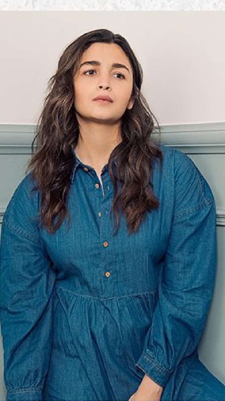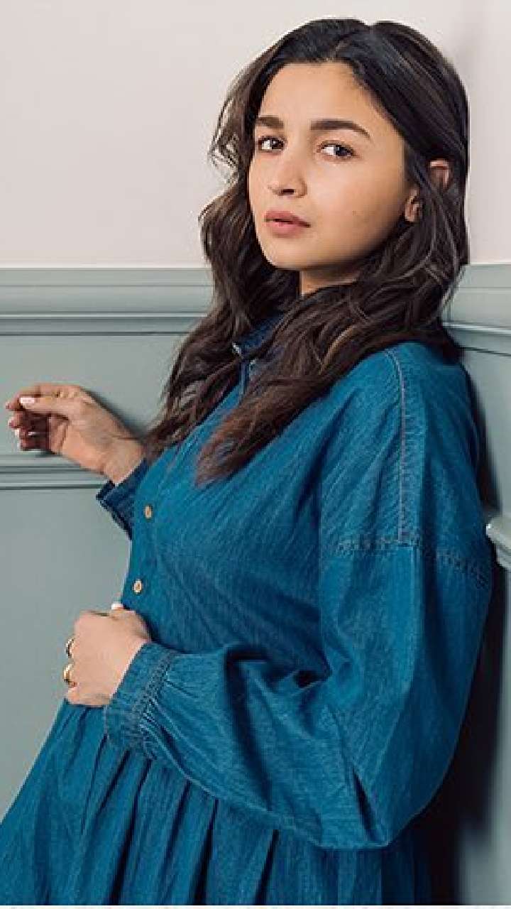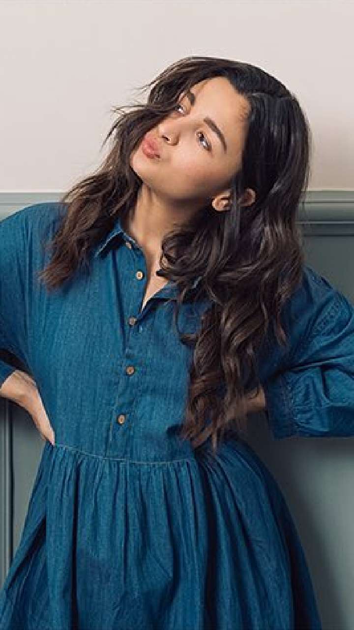 आलिया तस्वीर में डेनिम ड्रेस पोज देते हुए बेहद क्यूट लग रही है।