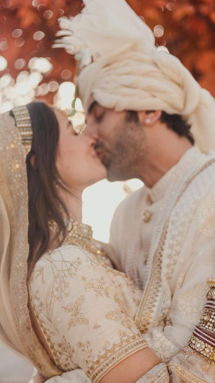 कपल की ये तस्वीर उनके वेडिंग डे की है। जिसमें वो एक-दूसरे को बेहद रोमांटिक अंदाज में लिप किस करते नजर आ रहे हैं।