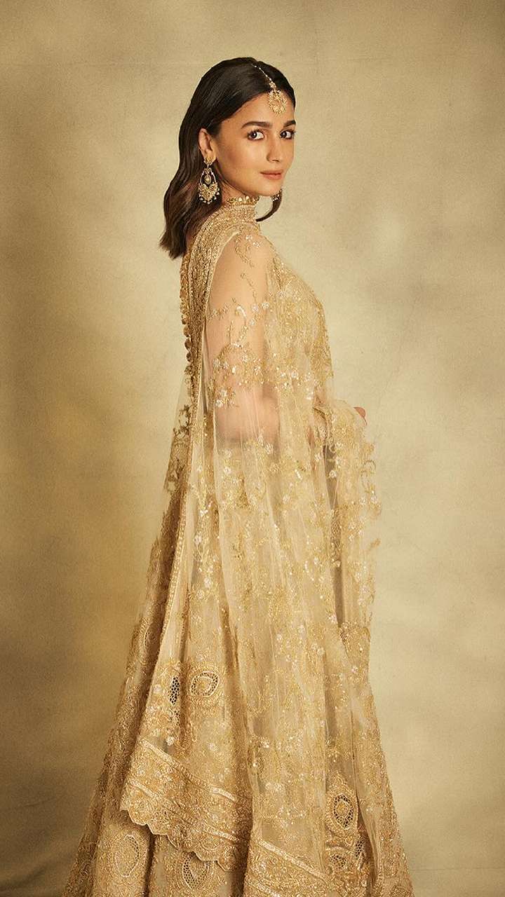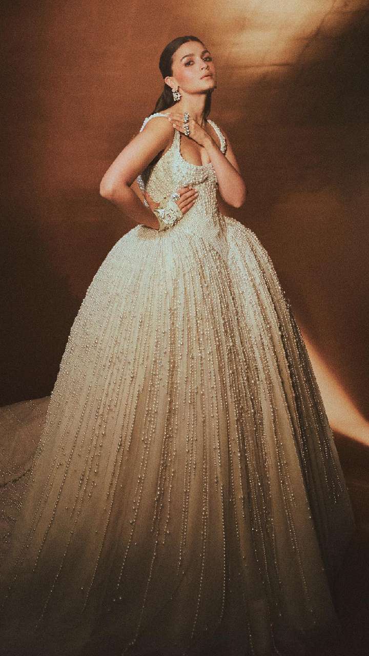 आलिया पर्ल वर्क गाउन में गॉर्जियस लग रही हैं। ऐसे गाउन ऑफिस इवेंट के लिए एकदम बेस्ट है।