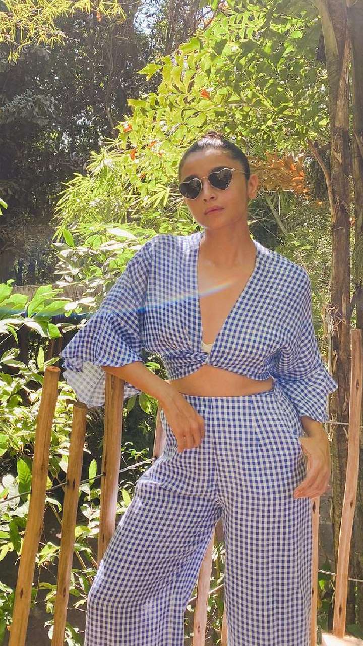 डीप नेक फुल स्लीव्स वाले इस चैक प्रिंटेड टॉप में आलिया भट्ट का लुक बहुत ही कूल लग रहा है। आप भी इस तरह के लुक कैरी कर सकती हैं।