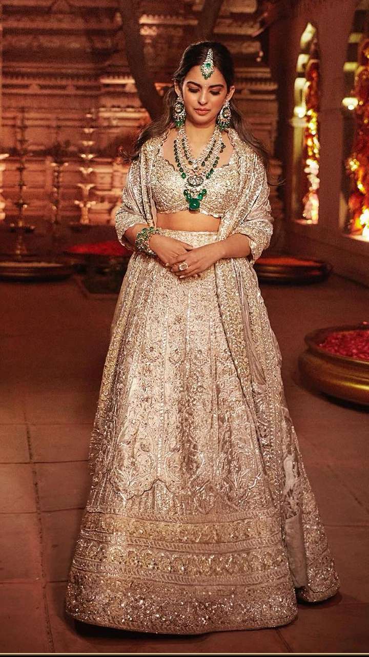 ईशा अंबानी का गोल्डन हैवी वर्क लहंगा लुक भी काफी अट्रैक्टिव था। इसमें ईशा एकदम शाही अंदाज में नजर आ रही थीं।