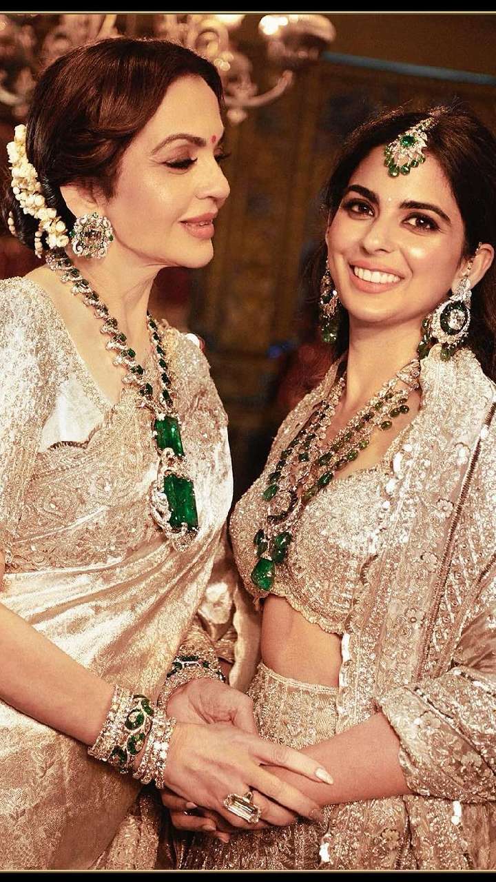 इस दौरान नीता अंबानी और उनकी बेटी ईशा अंबानी मैचिंग कलर के ऑउटफिट में नजर आई। नीता अंबानी ने गोल्डन साड़ी जबकि ईशा ने गोल्डन हैवी लहंगा कैरी किया था।