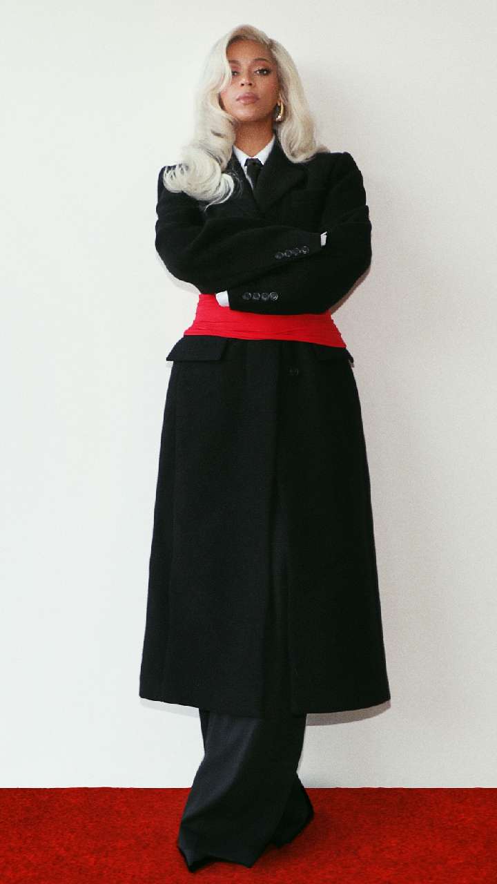 बियॉन्से ने व्हाइट कलर के कोट के साथ पैंट पहनी है, जो उनको क्लासी लुक दे रहा है।