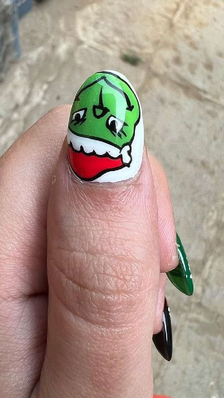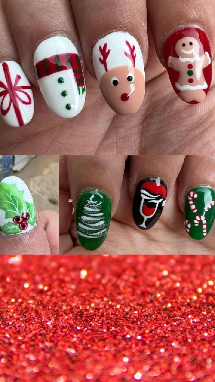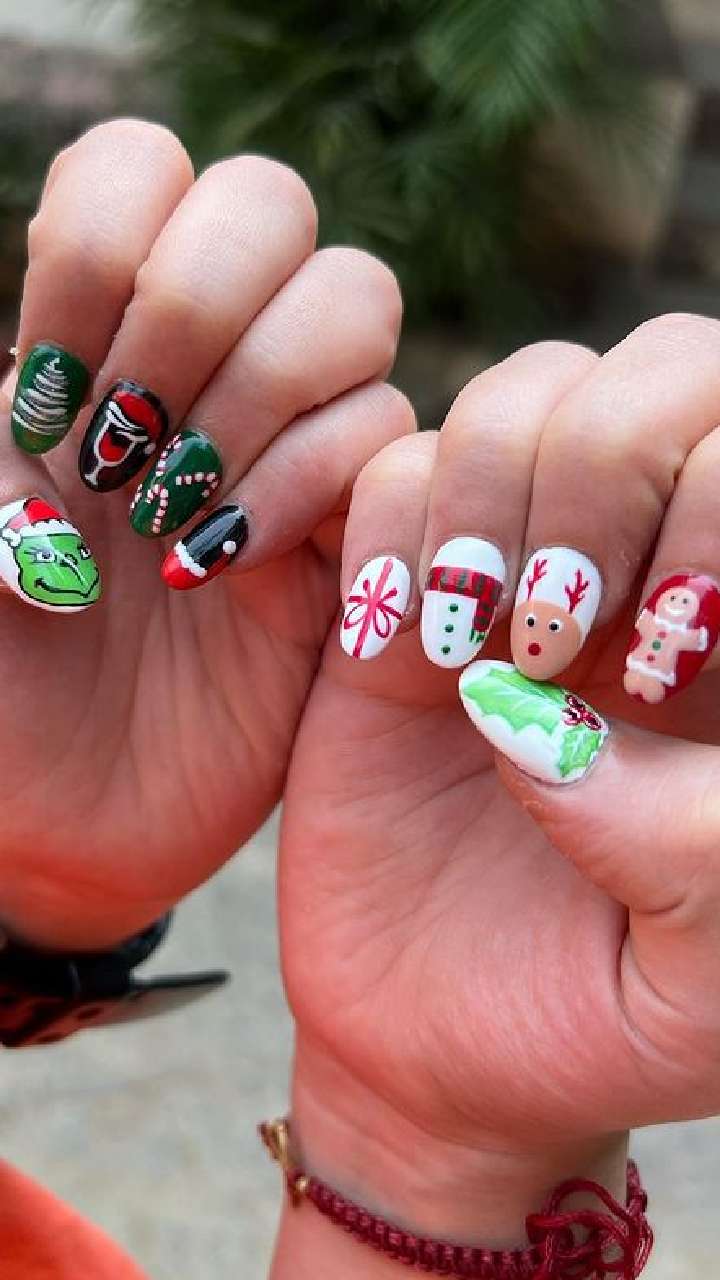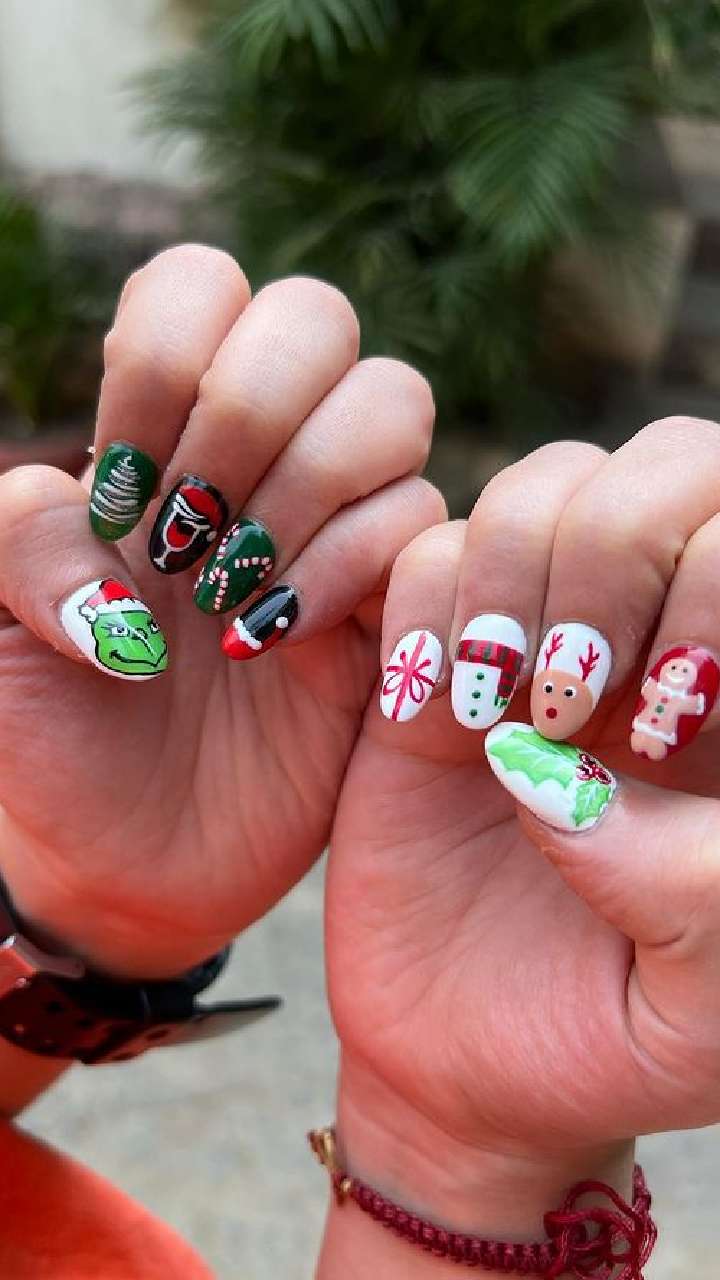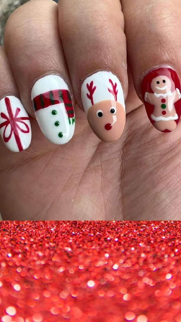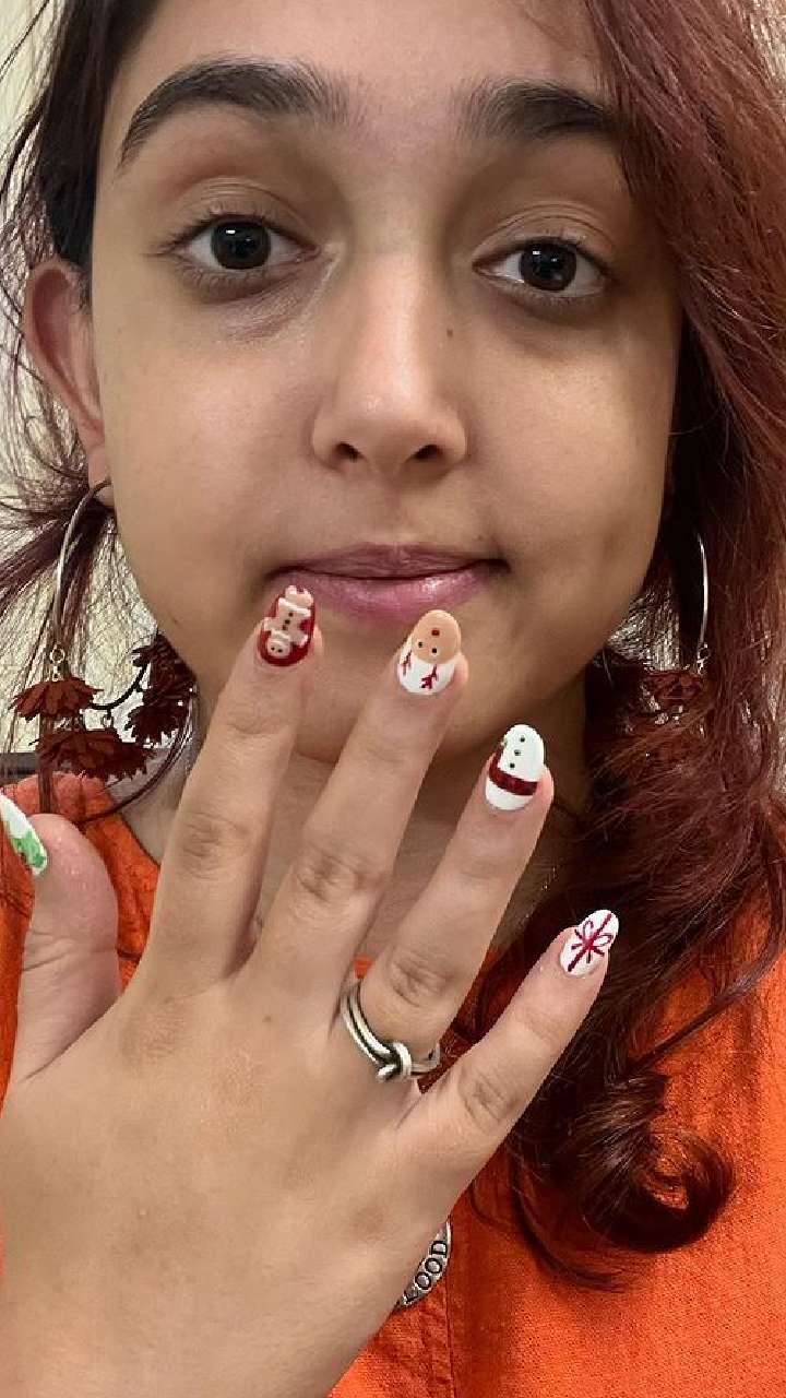 आयरा ने अपने नेल्स पर क्रिसमस ट्री पर हैंग होने वाले ऑब्जेक्ट, गिफ्ट, मफलर, लीफ, सांता फेस, सांता स्टिक को बनाया है।
