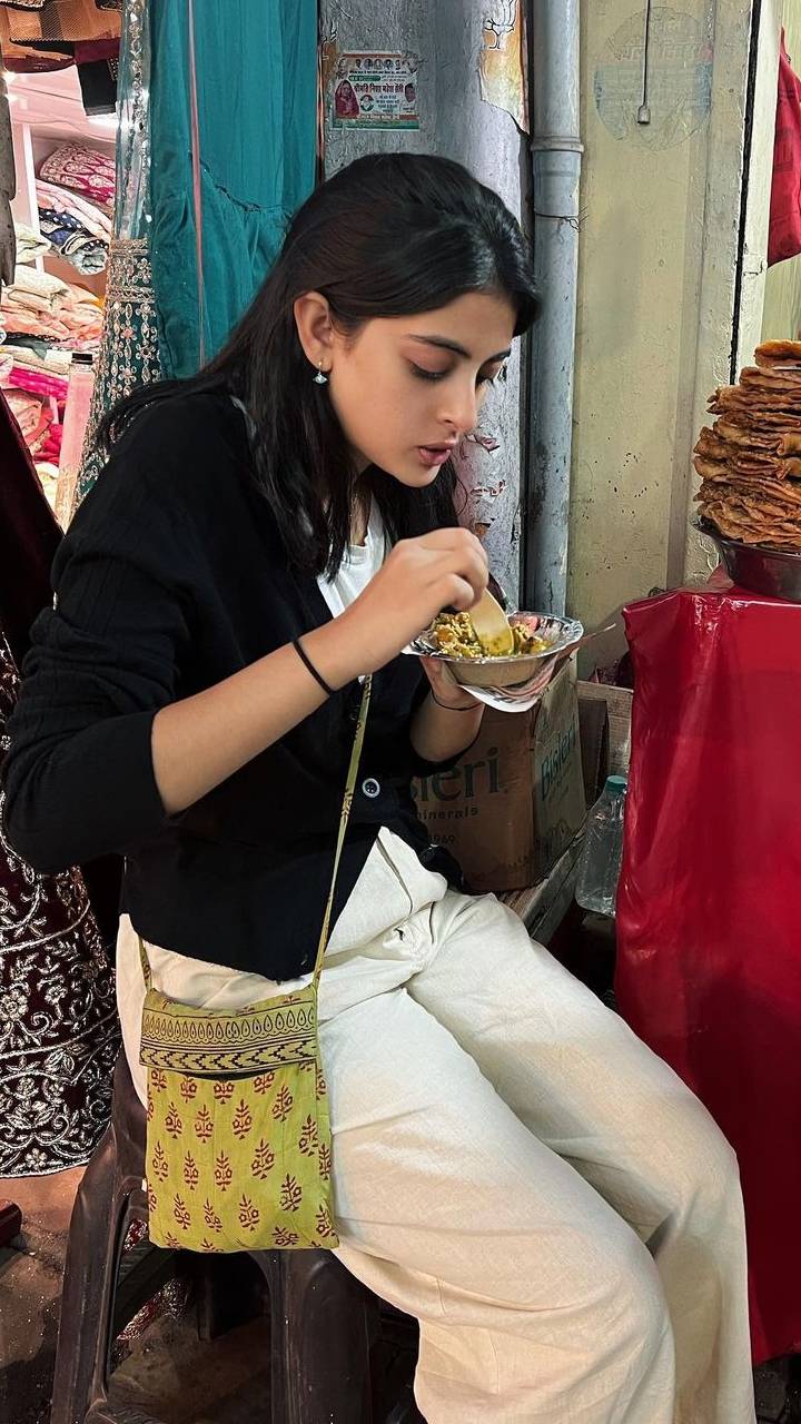अमिताभ की नातिन को इस तस्वीर में चाट का लुफ्त उठाते देखा जा सकता हैं।