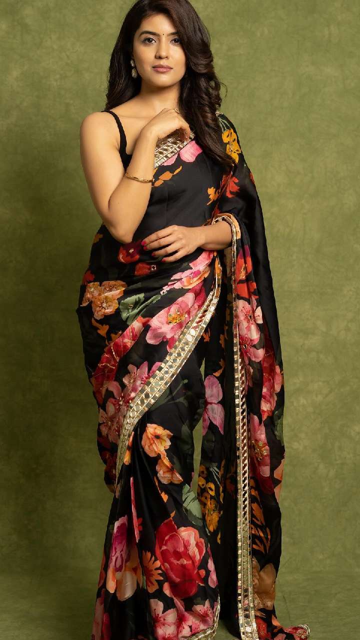 ब्लैक कलर की फ्लावर प्रिंटेड साड़ी में अमृता अय्यर काफी ज्यादा खूबसूरत लग रही हैं। आप भी इस तरह की साड़ी को स्टाइल कर सकती हैं।