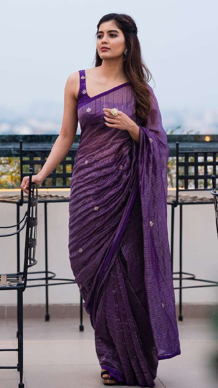 आप अमृता अय्यर की तरह ही आप भई कांजीवरम साड़ी को भी स्टाइल कर सकती हैं। इस तरह की साड़ी त्योहार पर शानदार लुक देती है।