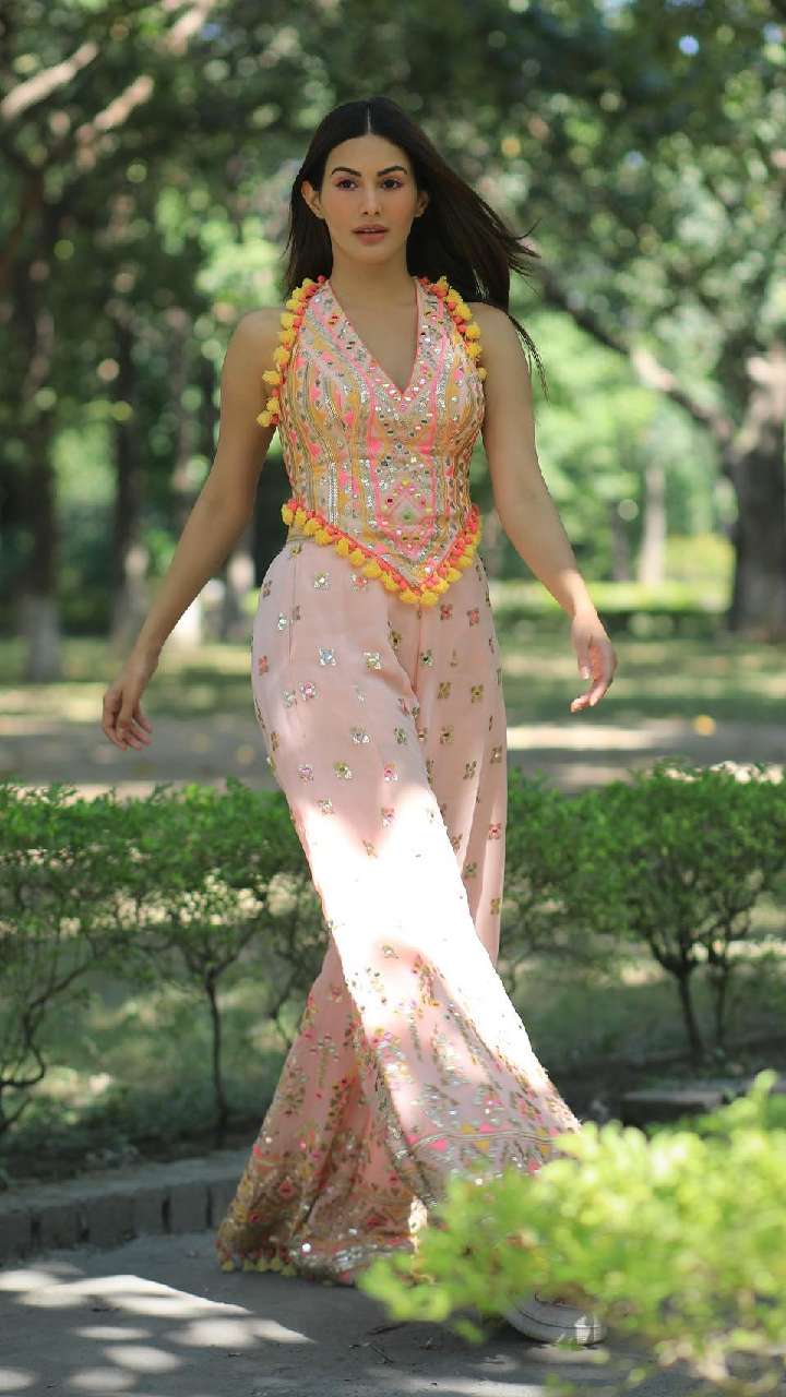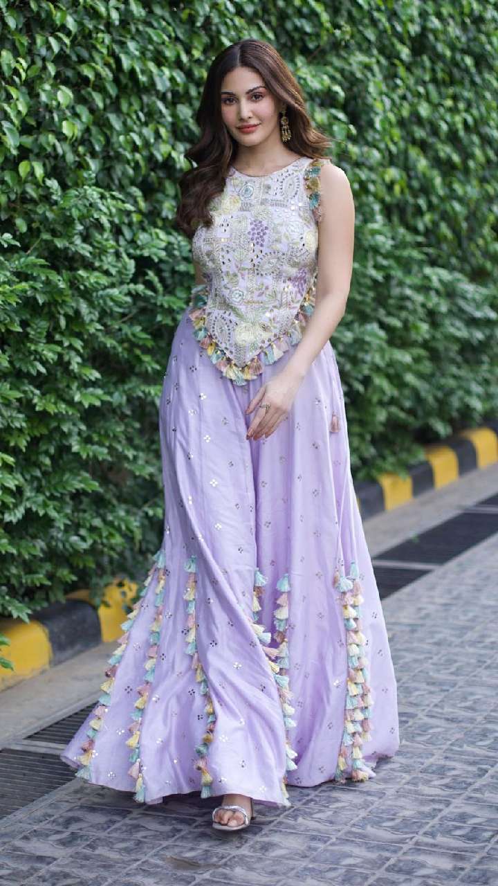 फिलहाल मिरर वर्क आउटफिट्स काफी ज्यादा ट्रेंड में चल रहे हैं। आप अमायरा दस्तूर की तरह ही मिरर वर्क आउटफिट भी स्टाइल कर सकती हैं।