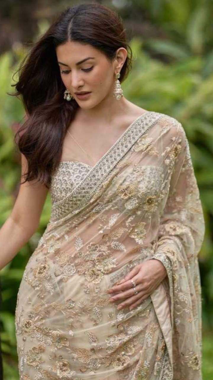 एक बार फिर एम्ब्रॉयडरी का ट्रेड चलने लगा है। सिंपल लुक के साथ अट्रैक्टिव दिखना हैं तो एक्ट्रेस की यह साड़ी परफेक्ट हैं।