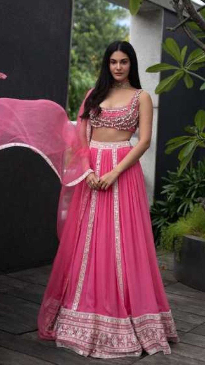 लड़कियों को पिंक कलर बहुत पसंद होता हैं। अगर आपको सिंपल रहना पसंद है तो आप एक्ट्रेस के इस लहंगे को ट्राई कर सकती हैं।