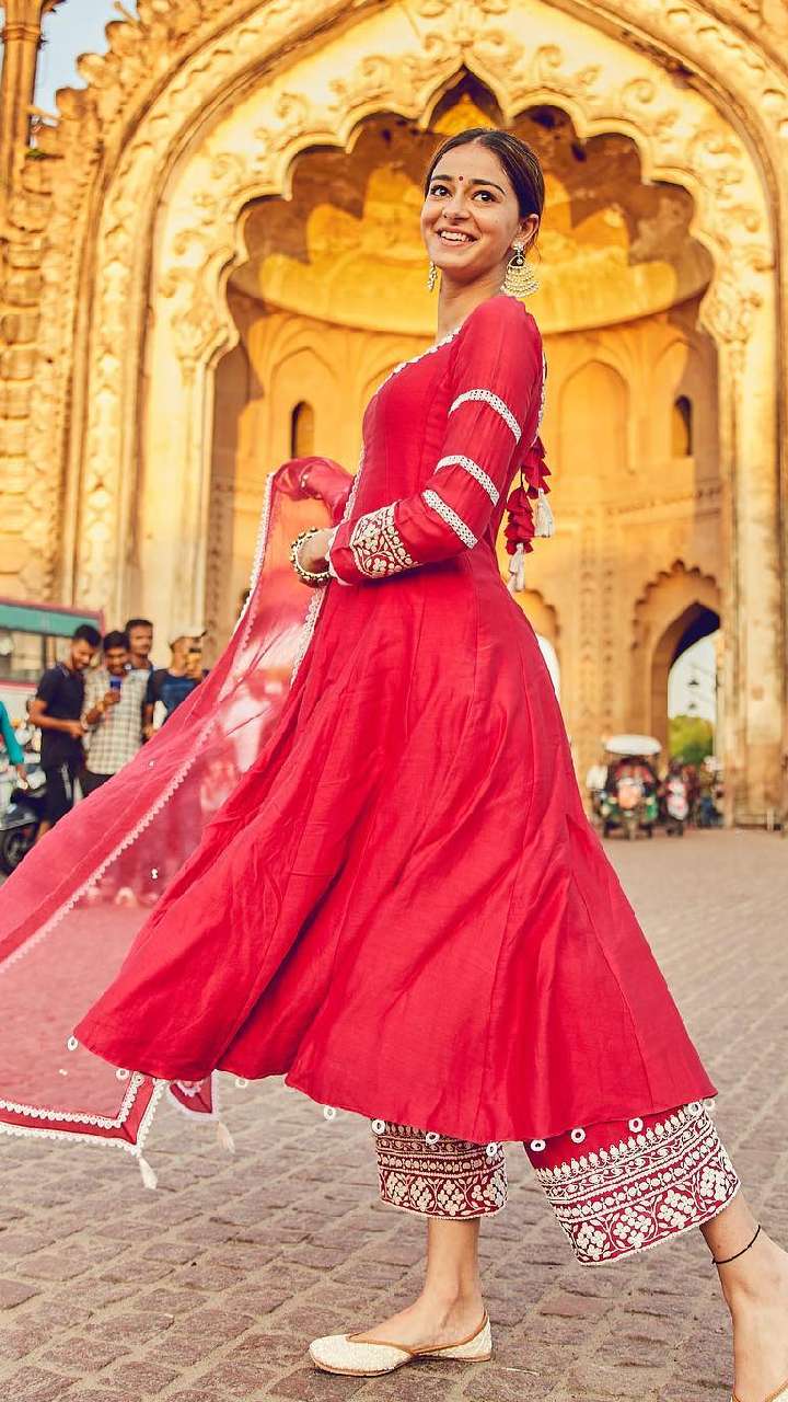 अनन्या पांडे का ये रेड सूट भी काफी प्यारा लग रहा है। रेड कलर का सूट आप किसी भी खास मौके पर कैरी कर सकती हैं।