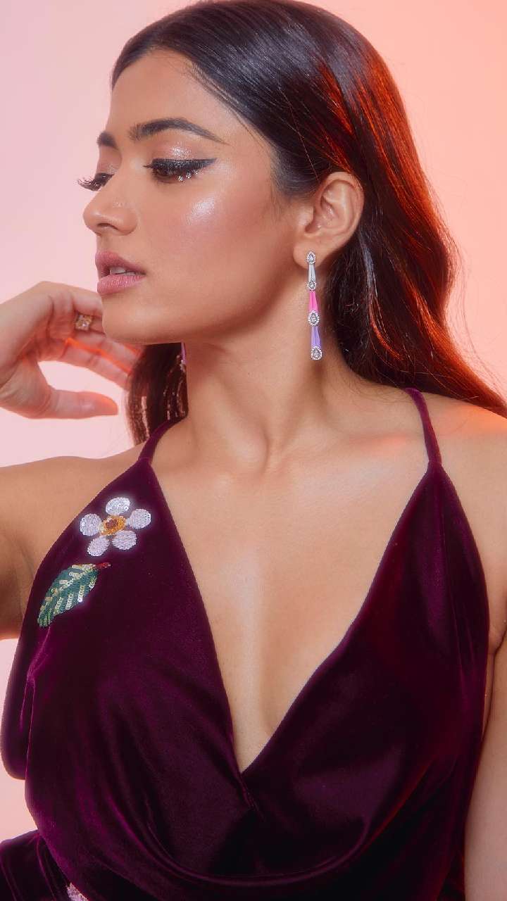 आप भी रश्मिका की तरह सूट के साथ डेंगल इयररिंग पहन सकती हैं। ये काफी स्टाइलिश लुक देते हैं।