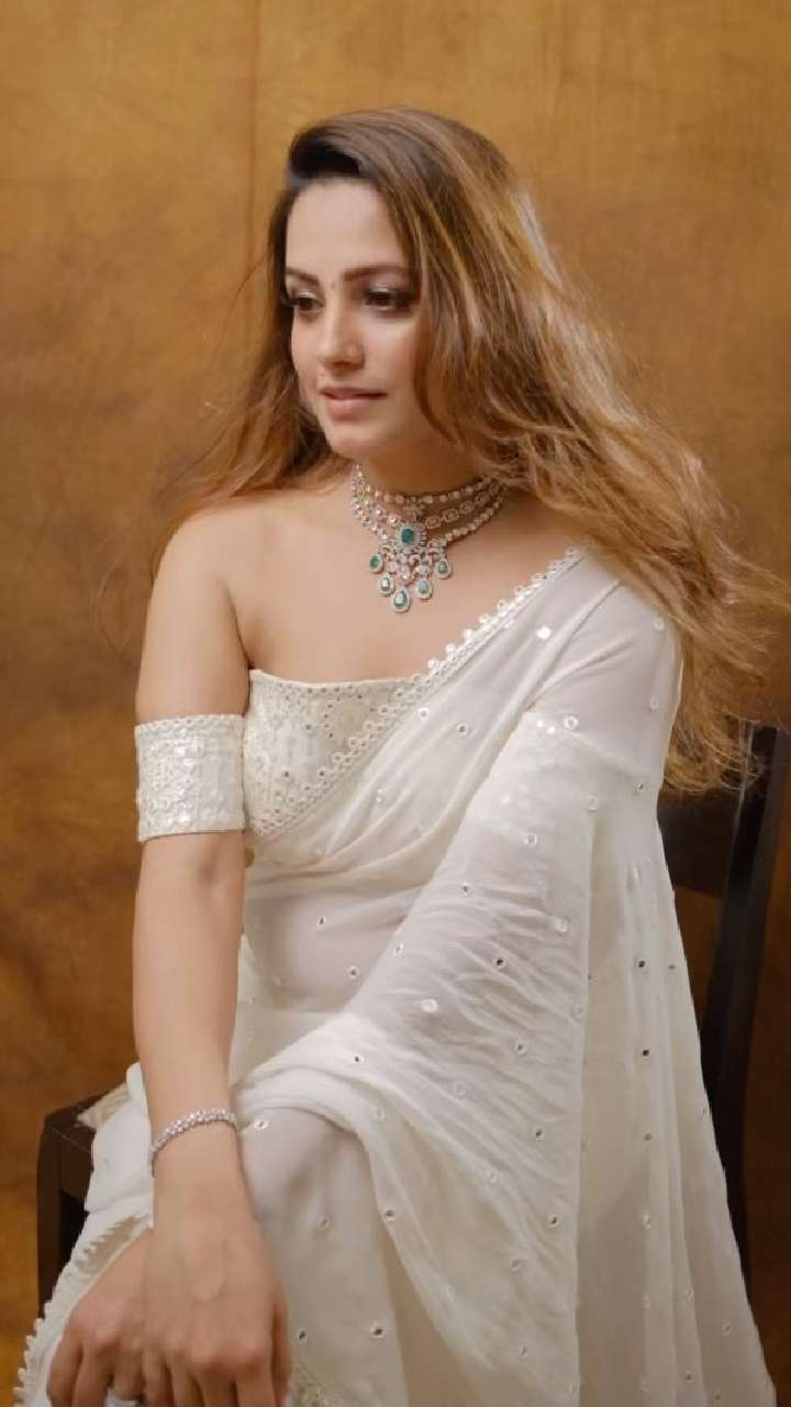 इस दिवाली अगर आपने ऐसी व्हाइट शिफॉन मिरर वर्क साड़ी को पहन लिया तो हर कोई आपकी तारीफ करेगा। इसके संग कोल्ड शोल्डर ब्लाउज लुक को इन्हेंस कर देगा।