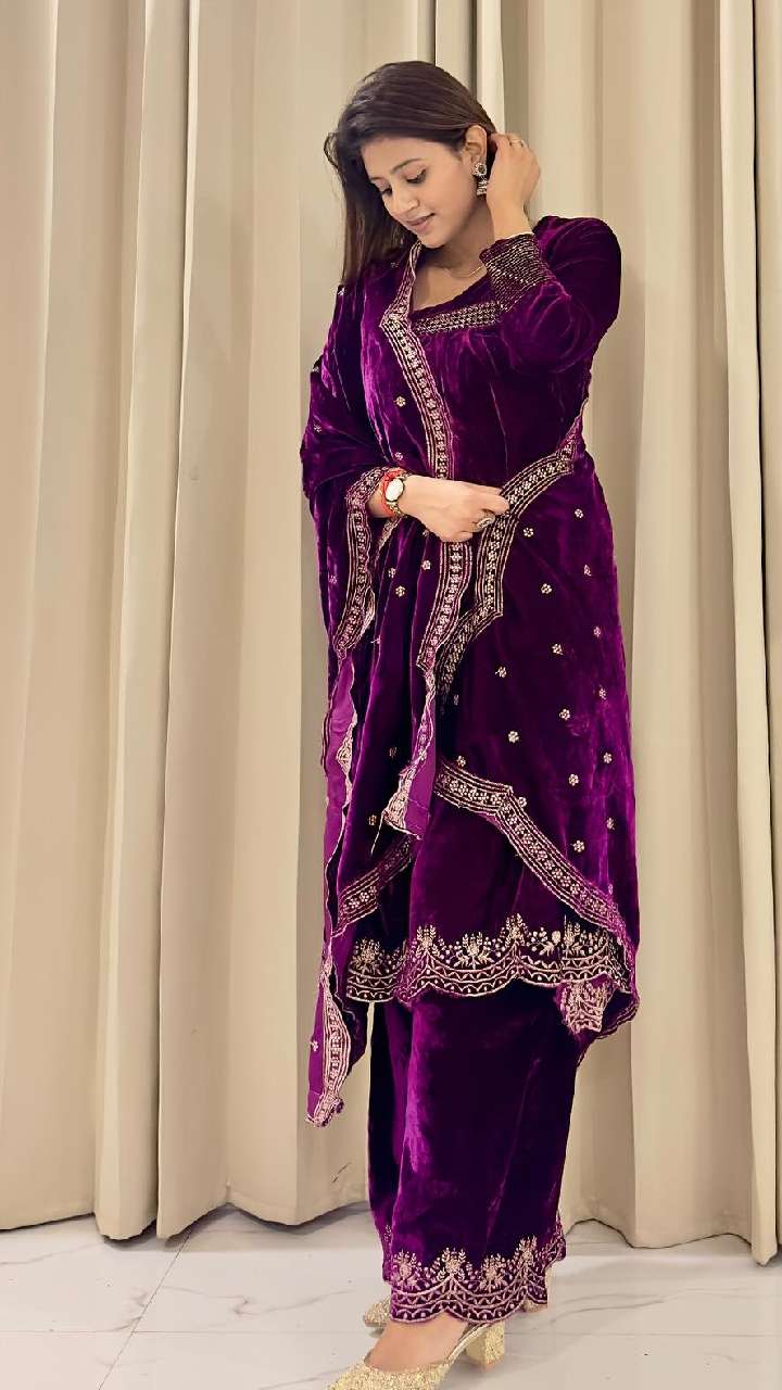 अपने सूट लुक को रॉयल बनाने के लिए आप अंजलि अरोड़ा की तरह ही वेलवेट सूट पहनें। एक्ट्रेस का ये सूट लुक काफी शानदार लग रहा है।