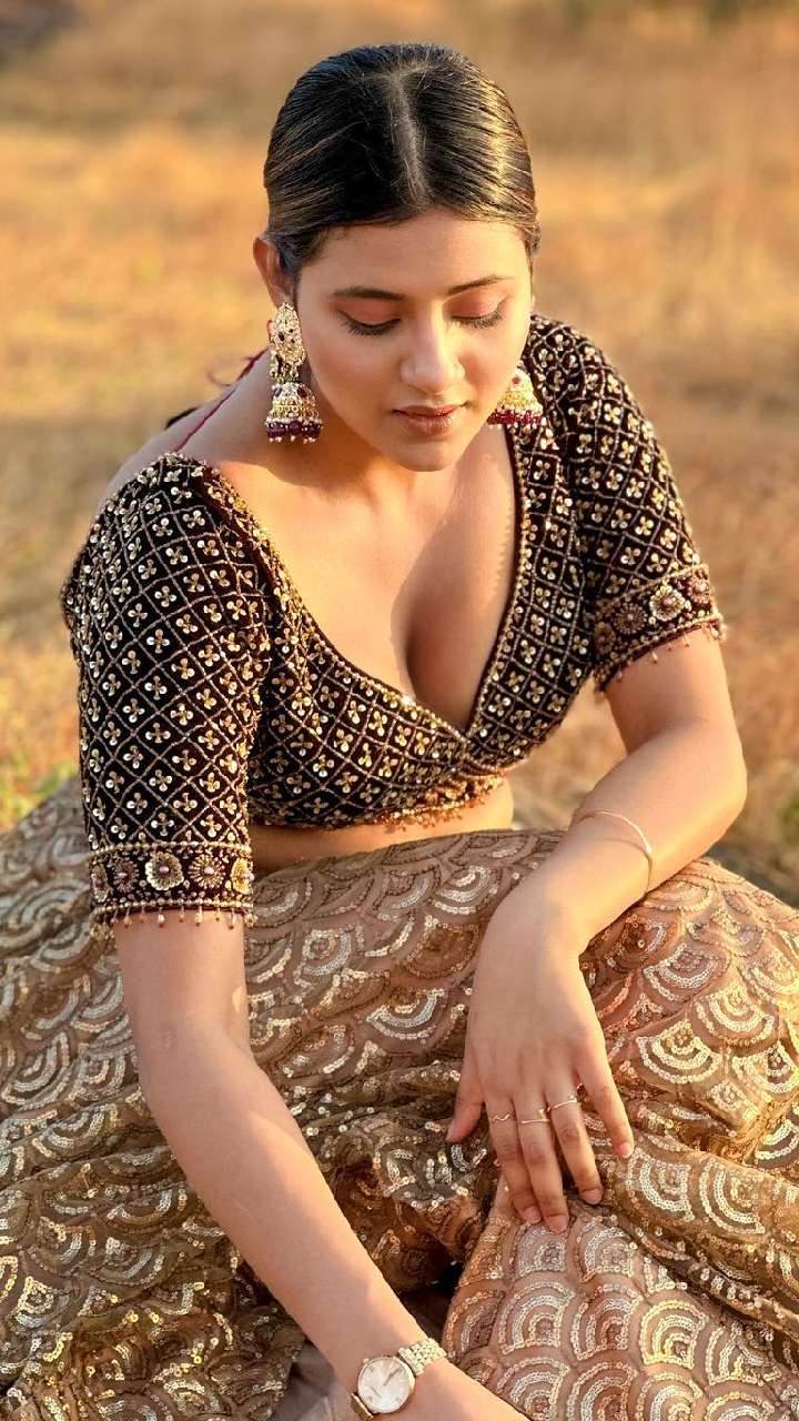 अगर आप इंडियन लुक से हटकर लहंगा या साड़ी पर कुछ डिफरेंट ट्राई करना चाहती हैं, तो अंजलि के इस ब्लाउज से आइडिया ले सकती हैं। वह वन शोल्डर हैवी एंब्रॉयडरी ब्लाउज में बेहद हॉट लग रही हैं।