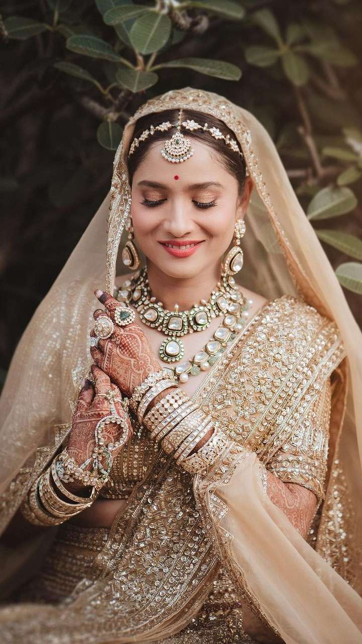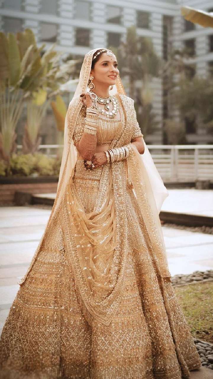अपनी शादी में अंकिता ने गोल्डन कलर का खूबसूरत लहंगा पहना था।