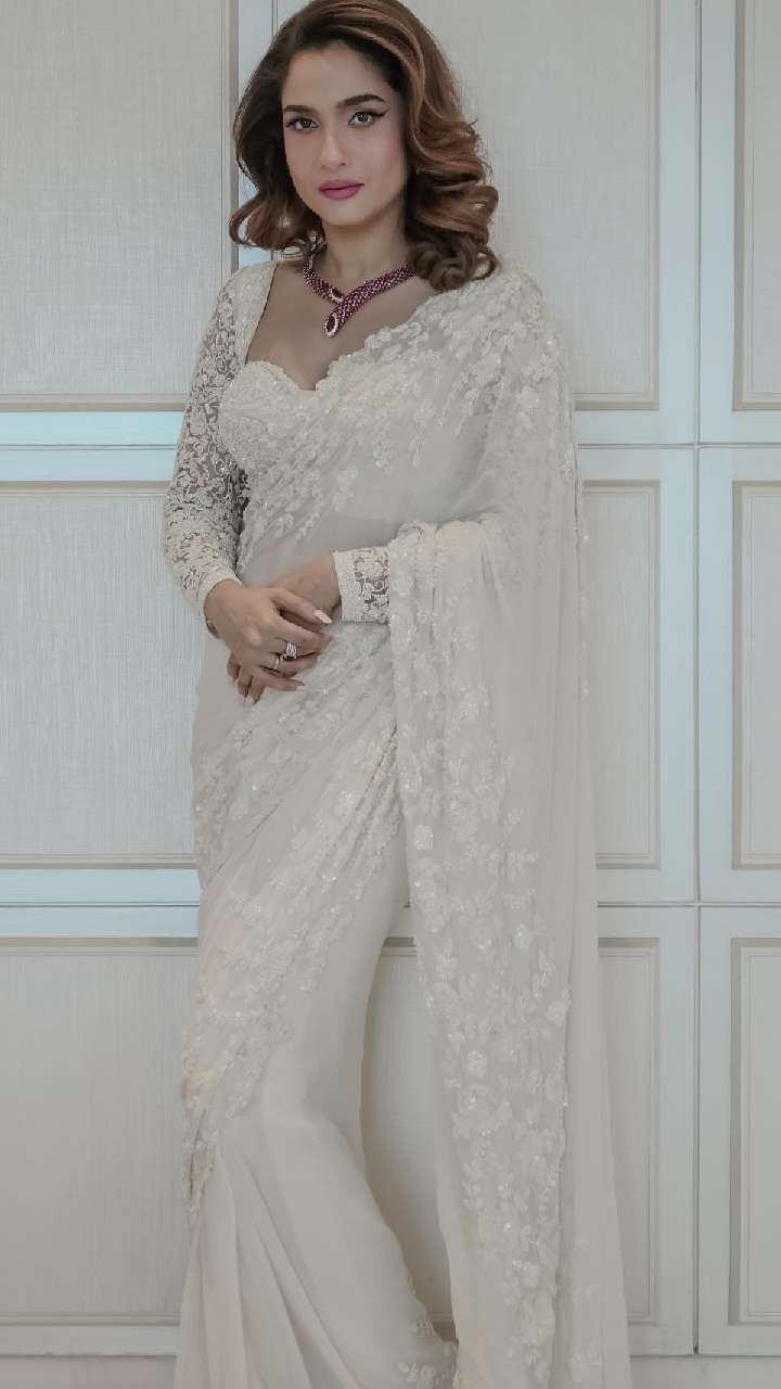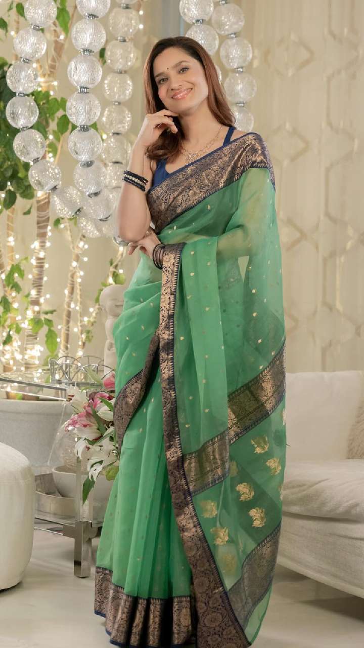 व्हाइट कलर की कट दाना साड़ी में अंकिता का रॉयल लुक देखा जा रहा है। फेस्टिव सीजन में आप भी इसे अपना लुक बनाकर जलवा बिखेर सकती हैं।