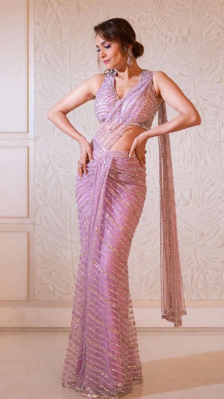 पिंक कलर की सेक्विन साड़ी नूडल स्ट्रैप ब्लाउज में अंकिता एकदम कातिलाना लग रही हैं। यंग गर्ल्स इस लुक से आइडिया ले सकती हैं।