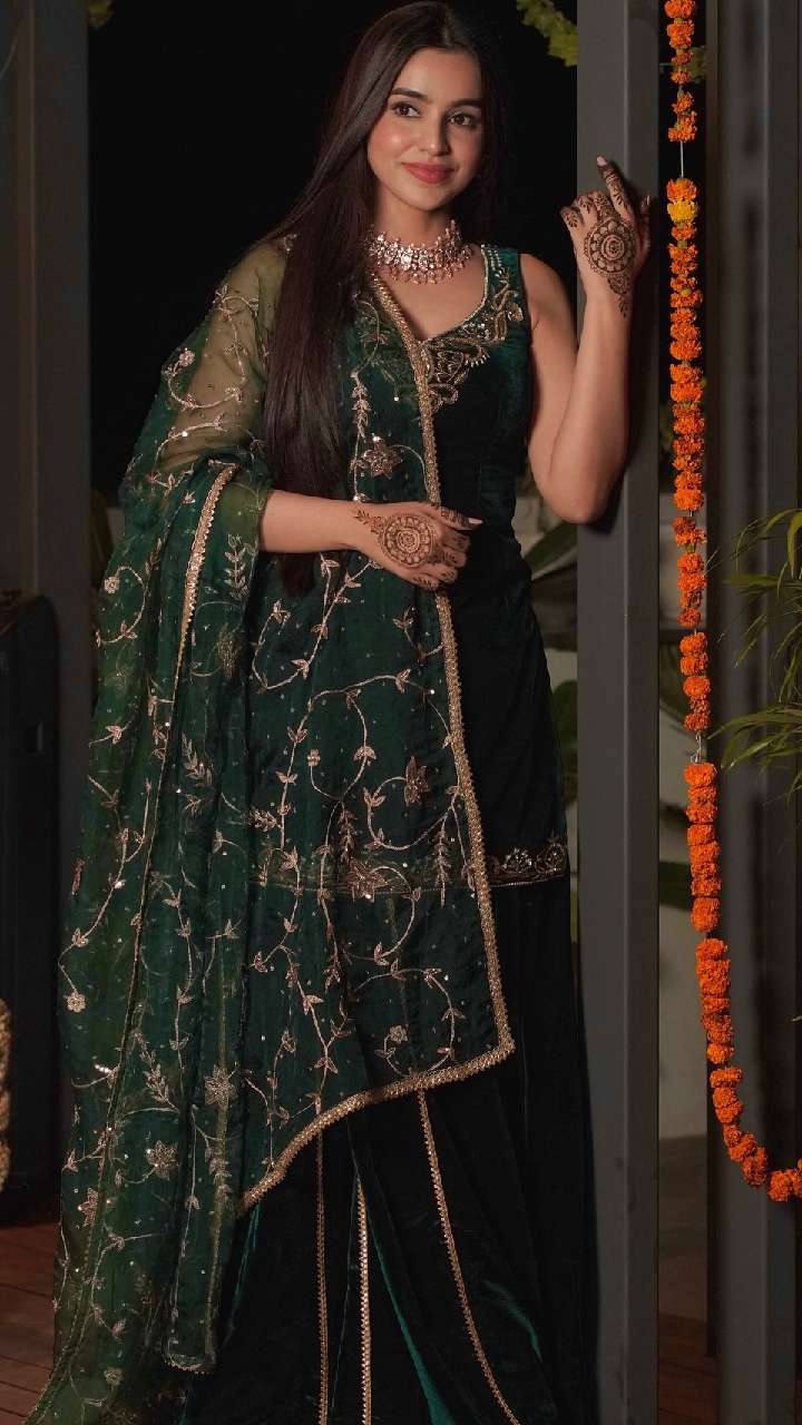महाशिवरात्रि पर आप एक्ट्रेस के इस रॉयल लुक देने वाले वेलवेट सूट को हैवी ऑक्सिडाइज्ड इयररिंग्स के साथ स्टाइल कर सकती हैं। कॉलेज गर्ल्स के लिए यह लुक एकदम परफेक्ट पर ऑप्शन है।