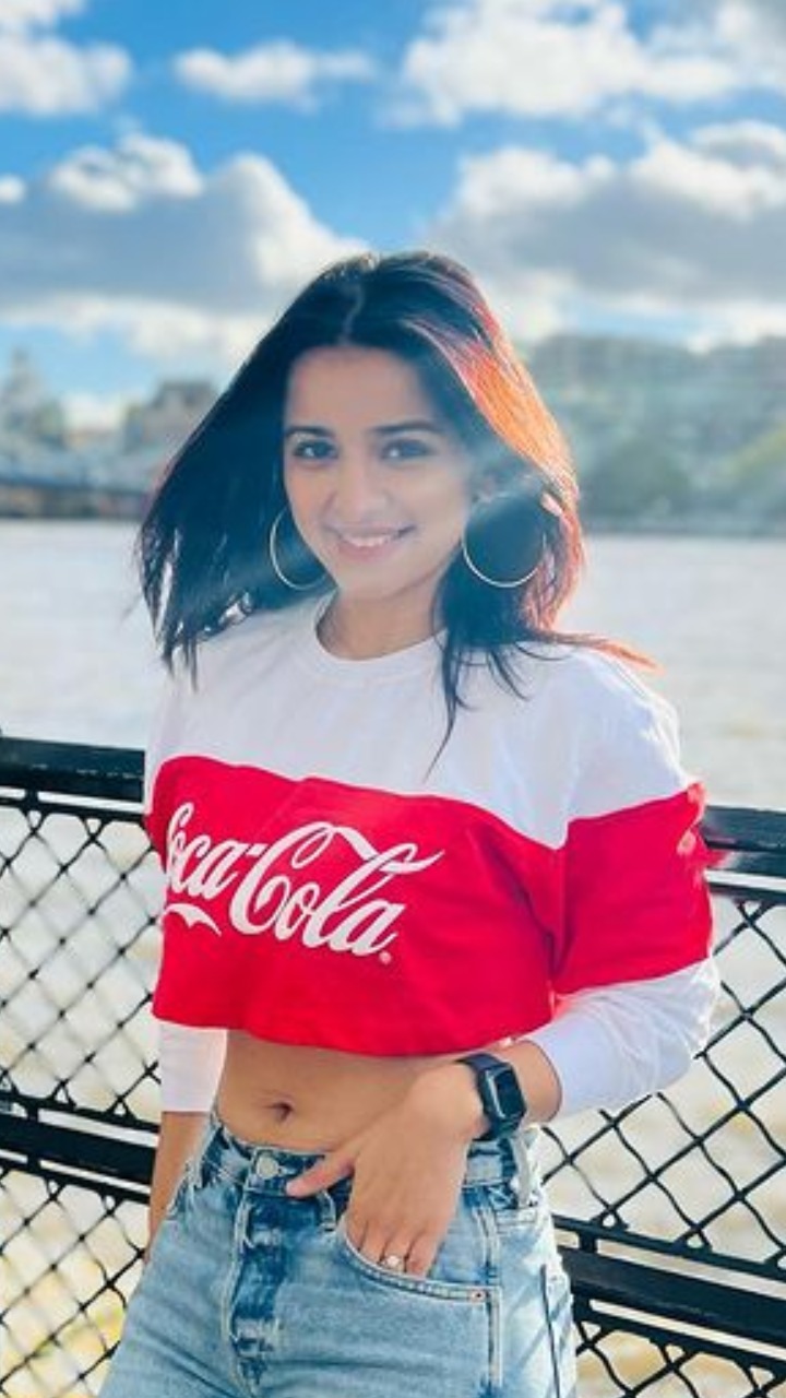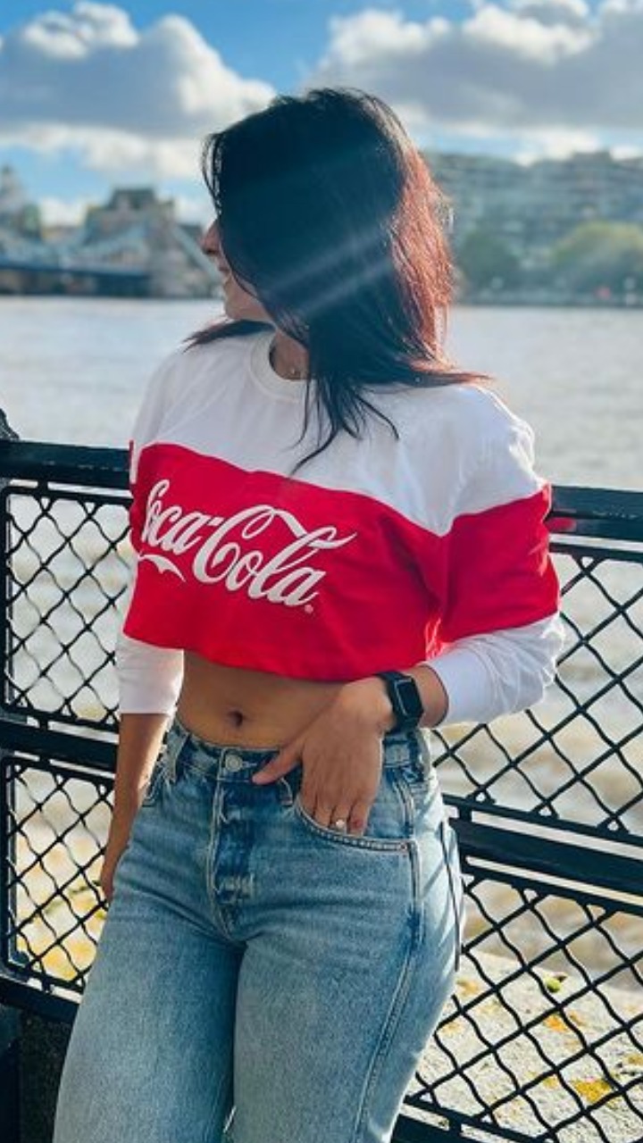 एक्ट्रेस ने क्रॉप टॉप और जींस में फोटोज शेयर की हैं। उनके टॉप पर कोका कोला लिखा है जो बहुत अट्रैक्टिव है।