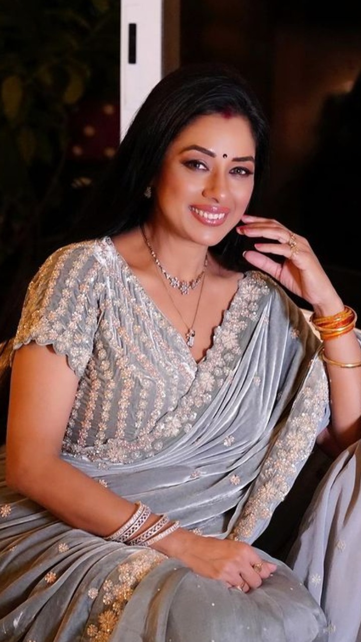 रुपाली गांगुली के इंडियन लुक के लिए बेहद कमाल होते हैं। एक्ट्रेस इस ग्रे नेटिड साड़ी में बेहद गॉर्जियस दिख रही हैं।