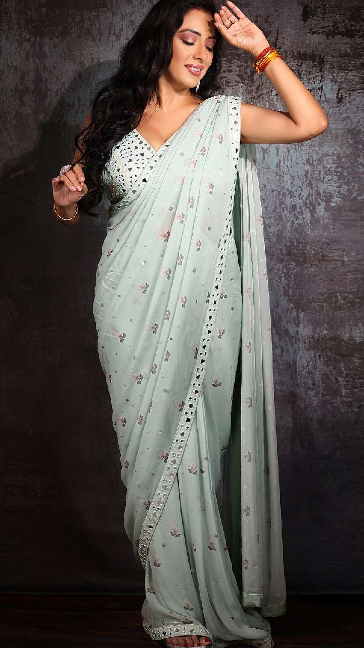 ऑफिस गोइंग वुमन के लिए मिरर वर्क साड़ी एकदम परफेक्ट ऑप्शन है। इस तस्वीर में एक्ट्रेस बहुत हसीन लग रही हैं।