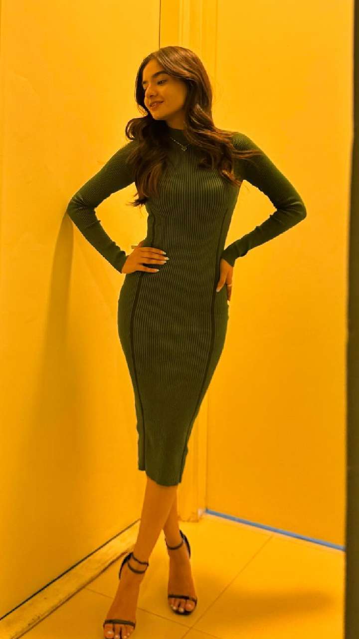 ग्रीन कलर की इस बॉडीकॉन ड्रेस में अनुष्का सेन काफी ज्यादा हॉट लग रही हैं। एक्ट्रेस की ये ड्रेस पार्टी के लिए परफेक्ट है।