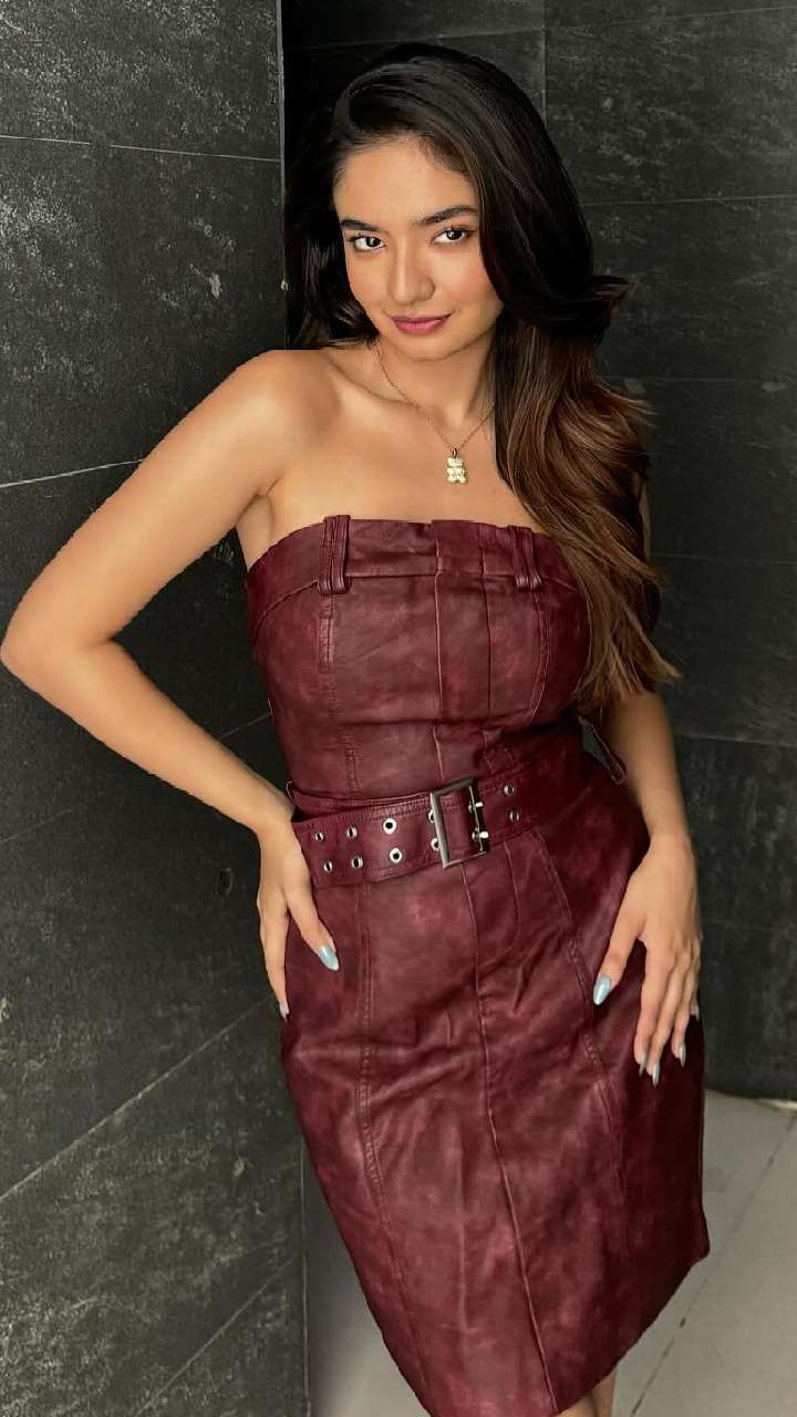 शॉर्ट लेदर ड्रेस में अनुष्का सेन का ये लुक काफी शानदार है। आप इस तरह की ड्रेस को हर तरह की पार्टी में स्टाइल कर सकती हैं।