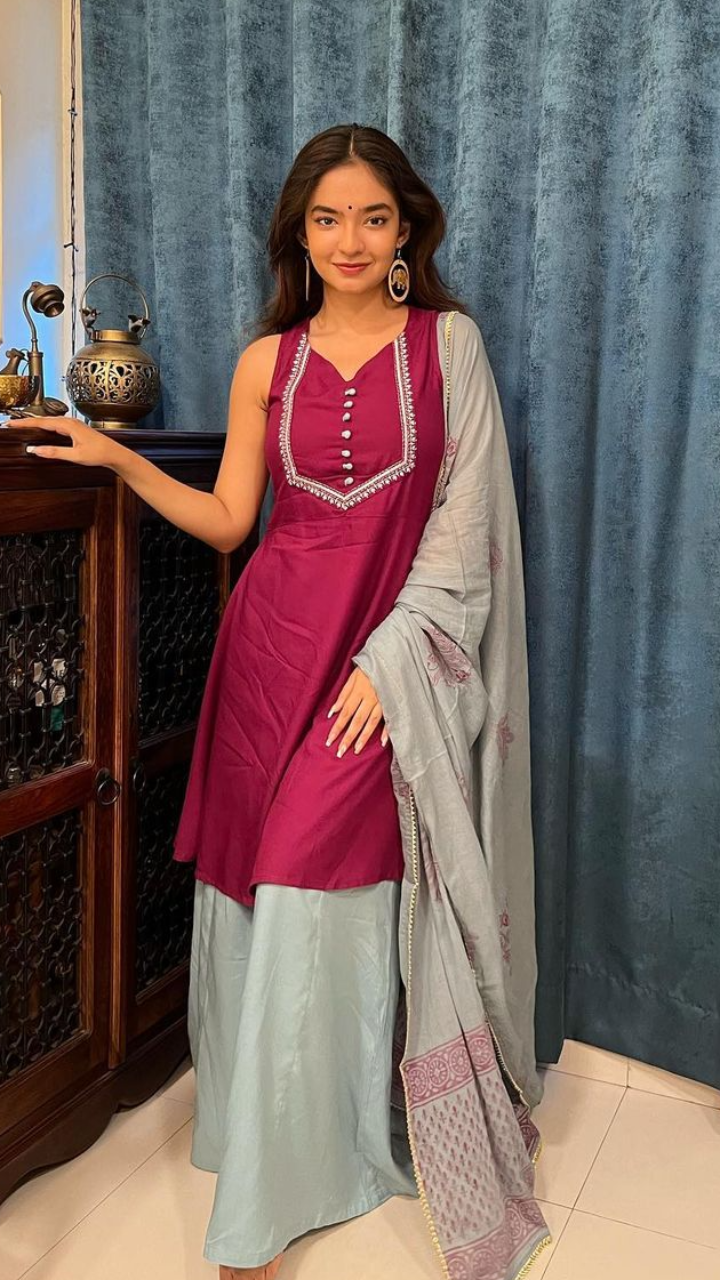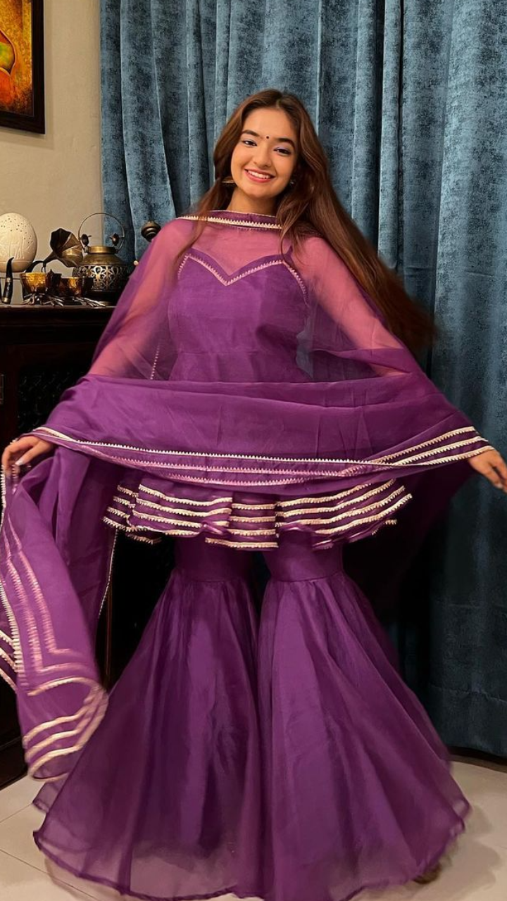 अनुष्का सेन इंडियन लुक की दीवानी हैं। इस पर्पल कलर के शरारा सूट में एक्ट्रेस बेहद सुंदर लग रही हैं।