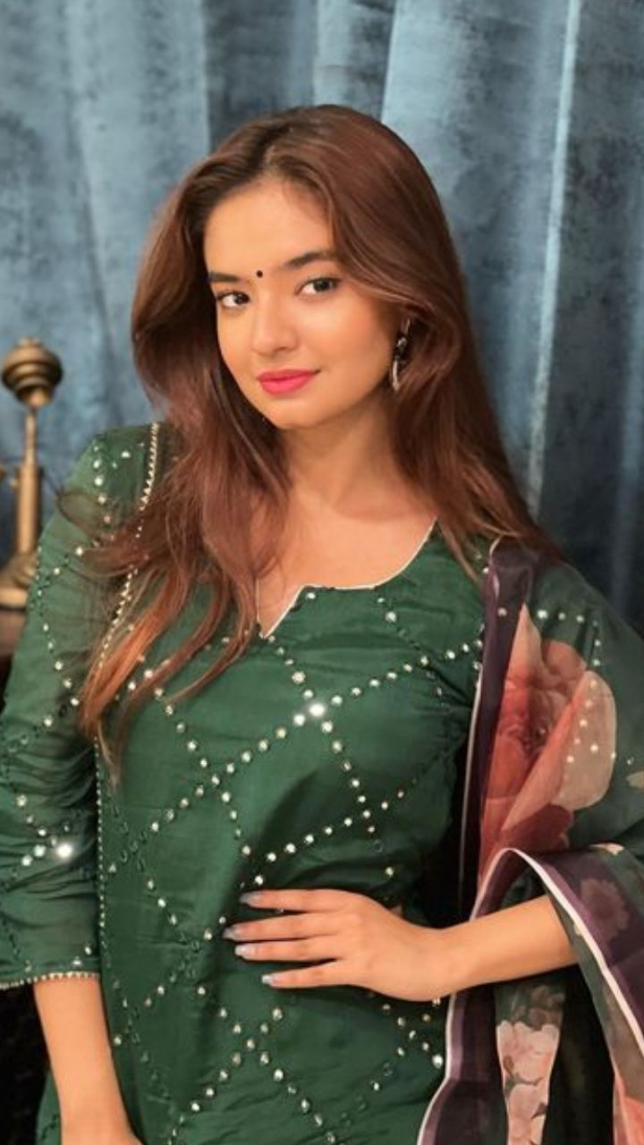 एक्ट्रेस ने तस्वीर में ग्रीन कलर का सूट पहन रखा हैं, जिसमें वो फैंस को काफी क्यूट लग रही हैं।