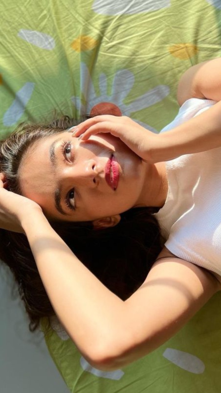 एक्ट्रेस इन फोटोज रिलेक्स करती हुई बेहद ही प्यारी लग रही हैं। उनकी स्किन ग्लो कर रही है।