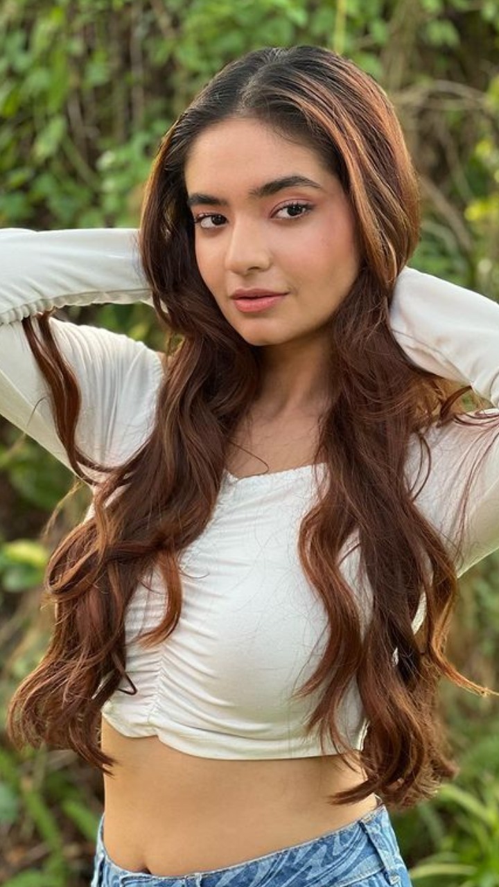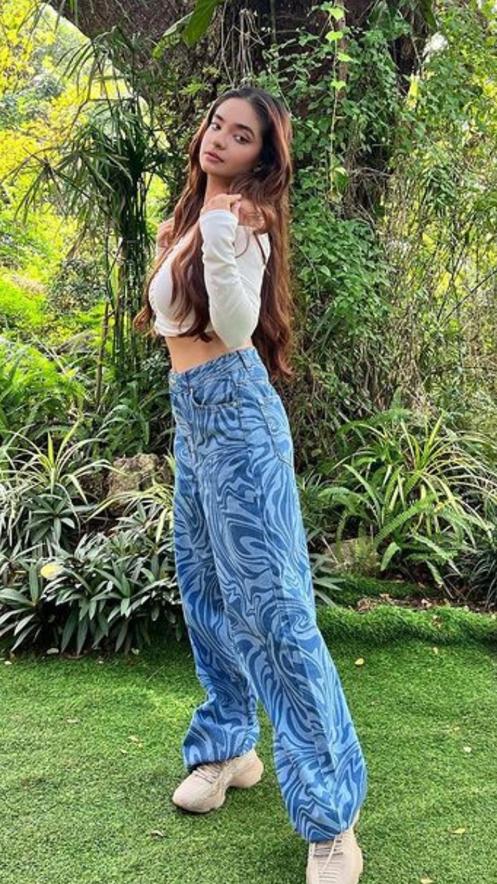 अनुष्का सेन क्रॉप टॉप और जींस मे काफी हॉट दिख रही हैं।