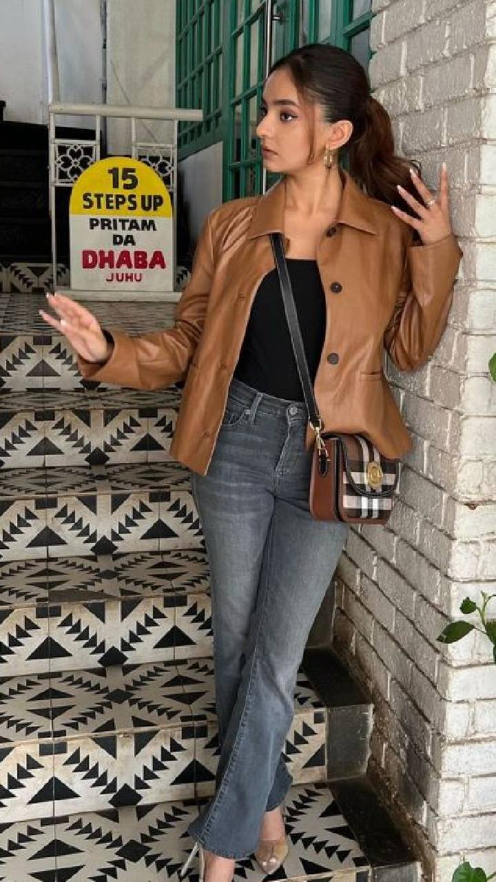 तस्वीर में एक्ट्रेस ने ब्लैक क्रॉप टॉप, जींस और लेदर जैकेट पहना हुआ हैं। अनुष्का ने अपने आउटफिट के साथ पर्स कैरी किया हुआ हैं।