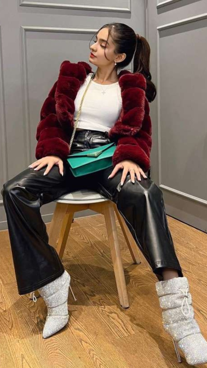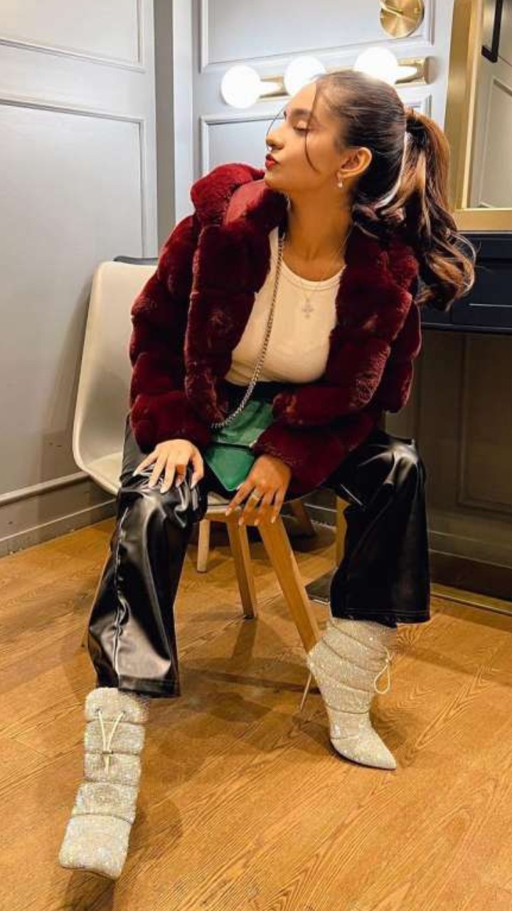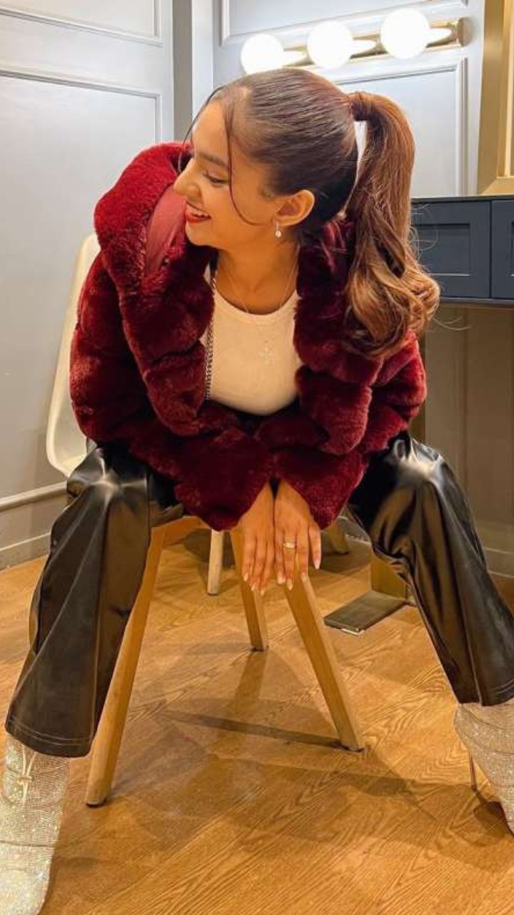 व्हाइट कलर की टॉप, ब्लैक कलर की पैंट और रेड कलर की वूलन जैकेट में एक्ट्रेस का ये लुक लोगों को बेहद किलर लग रहा हैं।